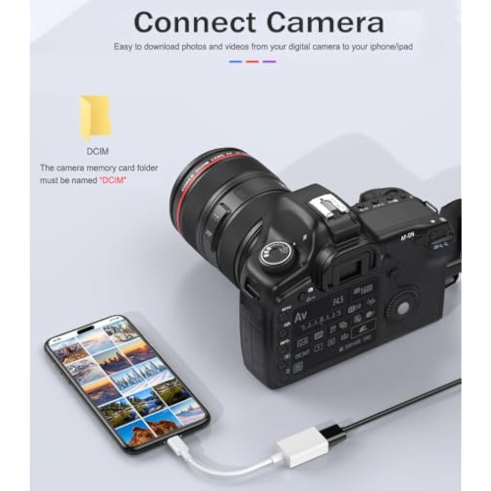 | An Ideal Solution For Copying Photos Or Videos From The Camera To Your Apple Devices With Usb-C Port In A Short Period. With This Usb To Iphone Adapter, You Can Transfer Photos And Videos From Your Camera To Your Iphone Or Ipad With Usb-C Port, Share The Wonderful Moments With Your Family Or Friend. | | The Usb-C To Usb Camera Adapter Compatible With Iphone 15/15 Pro/15 Plus/15 Pro Max, Macbook Pro 2020/2019/2018/2017/2016, Macbook Air /Ipad Pro 2020/2018, Samsung Galaxy S23/S22/S21, S20 S20+ S20 Ultra Note 10/Note 10Plus/Note8 S9/S9 Plus S8/S8 Plus, Lg G6 G5 V20 And More. | | Plug And Play, No App Needed And No Need To Take Out The Camera'S Memory Card. Usb 3.0 Supports Data Transfer Speeds Up To 5Gbps With Backwards Compatibility To Usb 2.0 (20Mb/S~30Mb/S). | | Usb-C Female Otg Data Sync Cable Also Can Be Widely Use For More Usb Device, Such As Digital Camera, Usb Flash Drive, Card Reader, Midi Keyboard, Mouse, U Disk, Hubs, Electronic Piano, Usb Microphone, Drum, Audio Interface, Mixer Etc. | | How To Connect: Connect The Usb-C To Usb Camera Dongle To Iphone/Ipad, Open The Photos App, Which Let You Choose Photos And Videos To Import, Then Organizes Them Into Albums. Tips: If There Is No Any Dispaly When Your Plug Usb Flash Drive. Just Find "Files" On The Desktop And Click "Browse" Then You Can See The Usb Flash Drive On Your Iphone. | |