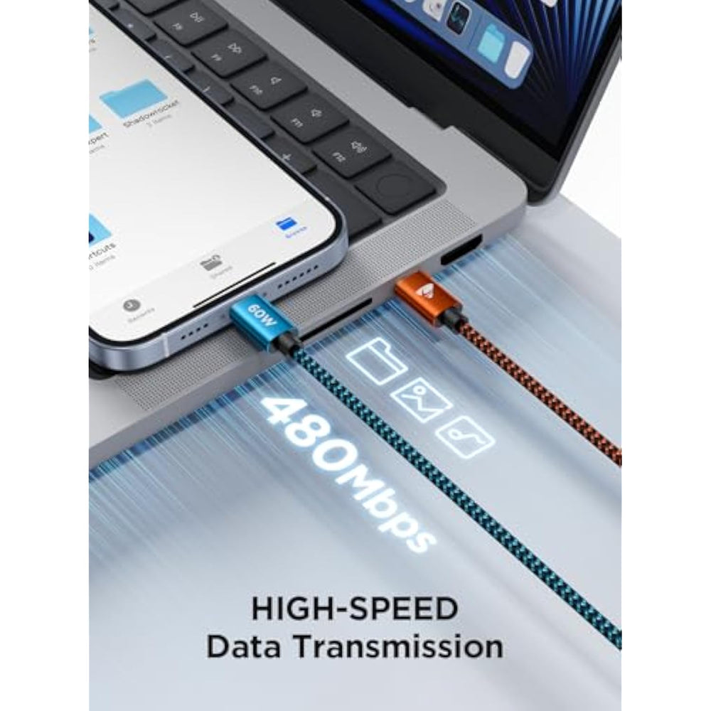 | 60W Fast Charging : This Usbc To Usbc Cable Supports Pd3.0/Qc3.0/Qc4.0 Fast Charging Up To 60W Max (20V/3A) With Usb-C Power Delivery Adapters Such As 30W/45W/60W. Compared To 100W, This Usb C To Usb C Cable Charging Cable Generates Less Heat During Charging, Which Can Extend Your Battery Life.Charge Your Iphone 15 From 0% To 86% In Just 35 Mins, Macbook Pro 16”To 50% In 35Mins, And Samsung S23/S24 Up To 88% In 35Mins.Data Transfer Speeds Up To 480Mbps(1200 Songs Synced Per Minute). | | Exclusive Pd 3.0 Chip : Equipped With The Upgraded Pd 3.0 Chip, This Usb C To Usb C Fast Cable Supports Usb Pd Fast Charging And Enhances Charging Safety Through Automatic Adjustment.Upgraded Pd 3.0 Chip Automati