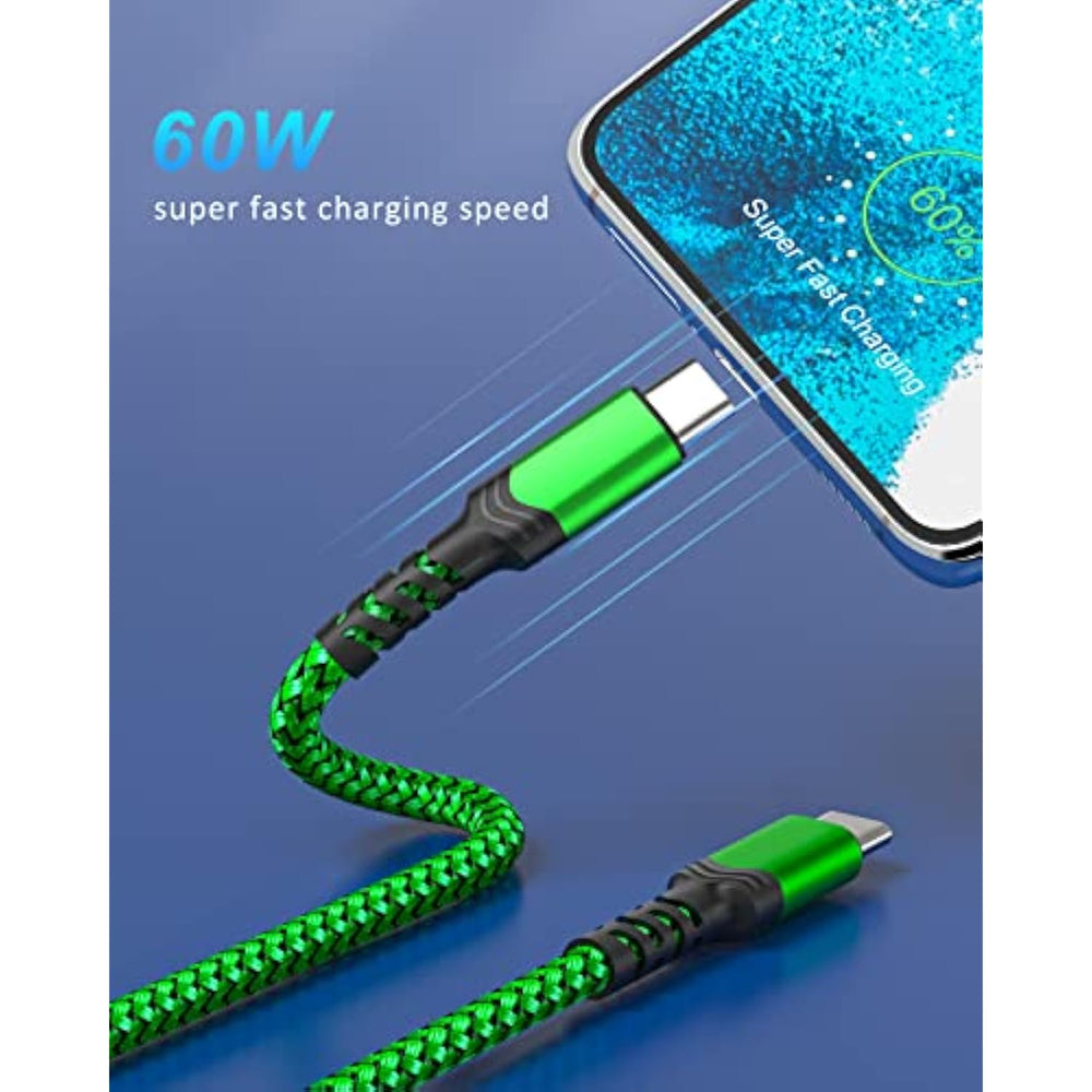 | ?Usb C To Usb C Cable?This Is A Usb-C To Usb-C 2.0 Cable, Which Means It Has The Same Usb-C Connectors On Both Ends. It Works With Usb C Wall Charger For Cellphone, Tablets And Laptops. Please Kindly Note That It’S Not A Usb-A To Usb-C Cable And It Does Not Work With Usb-A Chargers. | | ?Extra Length?10Ft Is Much Longer Than The Original Cables Come With Your Devices, It’S A Flexible Length For Different Occasions. It Allows You Staying On The Coach, Lying On The Bed, Sitting On The Backseats In The Car While Charging. | | ?60W Fast Charging?The Power Of This Usb-C To Usb-C Cable Is Strong Enough To Support 3 Amps Current 60 Watts Max, Efficiently Charge Your Phone In Full Speed.It’S Also Carrying Data Transfer Function In 480M/Bps. | | ?Built To Last?We Use Nylon Braided Cover To Make It Durable, Won’T Easy To Get Dirt In Daily Life For Long Time Use. Much More Friendly For Family With Cats/Dogs. Prolonged Sr Protector Help To Release The Bending Stress, Extending Its Lifespan. | | ?Broad Compatibility?Compatible With Iphone 16 Pro Max, Iphone 16 Pro, Iphone 16 Plus, Iphone 16, Iphone 15 Pro Max, 15 Pro, 15, 15 Plus, Galaxy S24 S23 Ultra, S23+, S23, S22 Ultra, S22+, S22, S21 Fe, S20, Note20, Note10, A54, A53, A71, A52, Pixel 7,6,5,4,4Xl, And Tablets: Pad Pro 12.6/11, Pad Air5/4, Pad Mini6, Galaxy Tab S8 S9. Besides, It Can Also Compatible With Macbook Pro And Macbook Air. | |