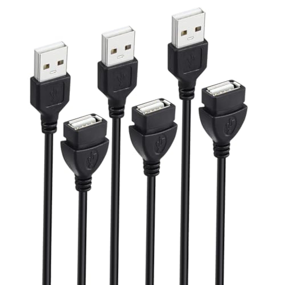 | USB A 2.0 male to female extender cable | | Support charging and data transfer up to 480Mbps | | 10 feet long; PVC cord | | Compatible with Printer, Keyboard, Mouse, Flash Drive, Hard Drive, Controller | | Pack of 3 cables, and add more for home, work, or travel | |