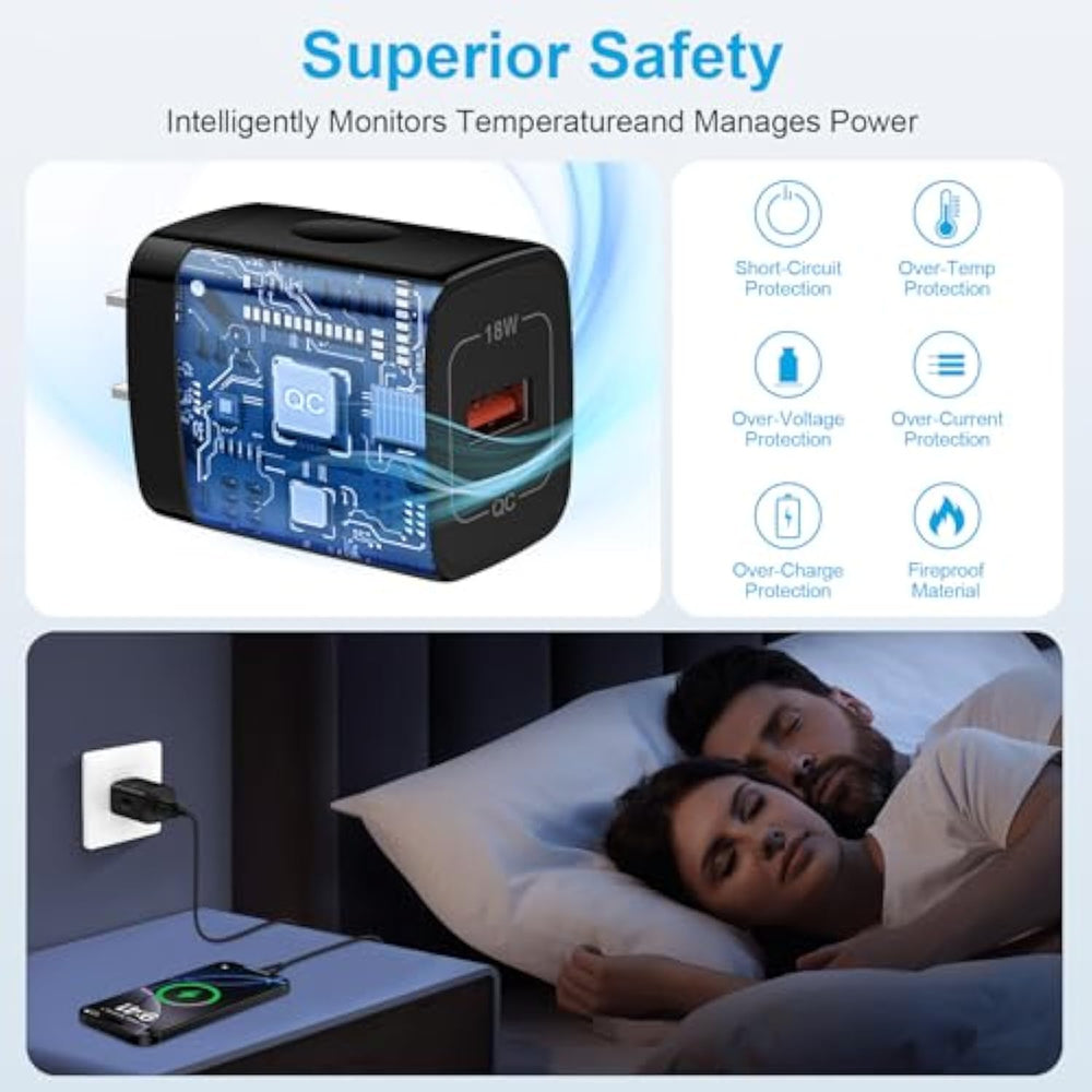 | ?Fast Charging Block?Quick 3.0 Fast Charging Technology Is Nearly 3 Times Faster Than Common Chargers, Charging Block Can Automatic Recognize Different Devices To Realize The Optimal Charge And Provide 18W Max Output Fast Charging Speed For Charging Iphone 16/15/14/13 Series From 0 To 50% In About 30Mins, For Samsung Galaxy S24 Fe From 15% To 100% In About An Hour (*Fast Charging Cable Is Not Included). | | ?Safe Reliable Wall Adapter?5V 3A Fast Charging Block Is Build-In Intelligent Chip And Circuit System Brings Better Power And Performance, Such As Protect Against Extreme Working Condition (Like Over-Charging/Over-Current/Over-Heating), Automatic Recognize Different Devices To Charge With Effect, And Automatic Stop Charging When Power Is Full. In Addition, Durable Pc Fireproof Shell Is Another Excellent Safeguard That Protect Your Device Maximally. | | ?Fast Wireless Charger Adapter?18W Qc 3.0 Adapter Working As A Wireless Charger Power Adapter, Support Fast Charging Mode For Iphone, Pad And Galaxy Phones; Also Great As Replacement For Oem Chargers To Use For Home, Office, Travel Or Car. 100-240V Input With Compact Design Make It Easy To Carry And Store In Backpack Or Suitcase For Travelling. | | ?Usb-A Charger Block Wide Compatibility?Qc 3.0 Fast Charging Plug Works For Most Devices, Such As Wireless Charging Stand/Pad, Compatible With Iphone 16/15/14/13/12 Pro Max Series, Samsung Galaxy S25 Ultra/S25/S25+/S24 Fe/S24/S24Ultra/S24 Plus/S23 Fe/S23/S23 Ultra/S23+/S22/S22 Ultra/S22 Plus/S21 Fe/S21/S21 Plus/S21 Ultra/Note 20 10 9/A16 5G A55 A15 5G;Google Pixel 9/9 Pro/9 Pro Xl/9 Pro Fold/8 Pro/ 8/7A/7 Pro/7/6 Pro/6A/6;Moto G Stylus 5G 2024/Moto G (2024)/G Power/Razr+;And More Usb Devices. | | ?What You Get?1-Pack 18W Qc 3.0 Charger Block, Our Friendly