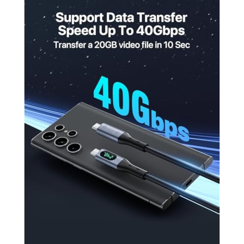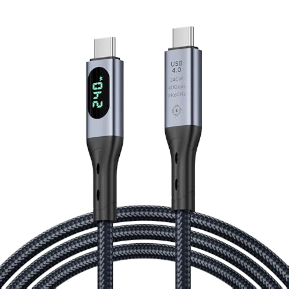 | ?240W Power Delivery With Led Display?: Supports High-Speed Charging Up To 240W (48V 5A) Output When Used With A Compatible Charger, To Easily Supply Power To Any Usb-C Devices From Phones To Laptops. Never Worry About Running Out Of Power In The Middle Of A Game Again. Real-Time Charging Power Visible, Show Charging Status And Signify High Power Process. | | ?Maximum 40Gbps Fast Data Transfer?Supports The Usb4.0 Standard With Unmatched Data Transfer Speed Up To Maximum 40Gbps Bandwidth For 40Gbps Compatible Usb4 Devices; The Usb C Cable Is Also Compatible With 20Gbps Usb4 Devices Move Files Fast: Transfer Music, Movies, Or Entire Seasons Of Tv Shows In Seconds At Maximum 40 Gbps. | | ?Ultra Hd Display?Connect Your Laptop To An External Monitor To Mirror Or Extend Your Screen In Up To 8K@60Hz Or 4K@144Hz. | | ?Wide Compatibility? 240W Usb-C Charging Cable Works Seamlessly With Laptops, Cellphones,Tablets,Docking Stations And More. | | ?What You Get In Box?1 X (3.3Ft, Usb4) Usb C To Usb C Cable, 24-Month Worry-Free And Friendly