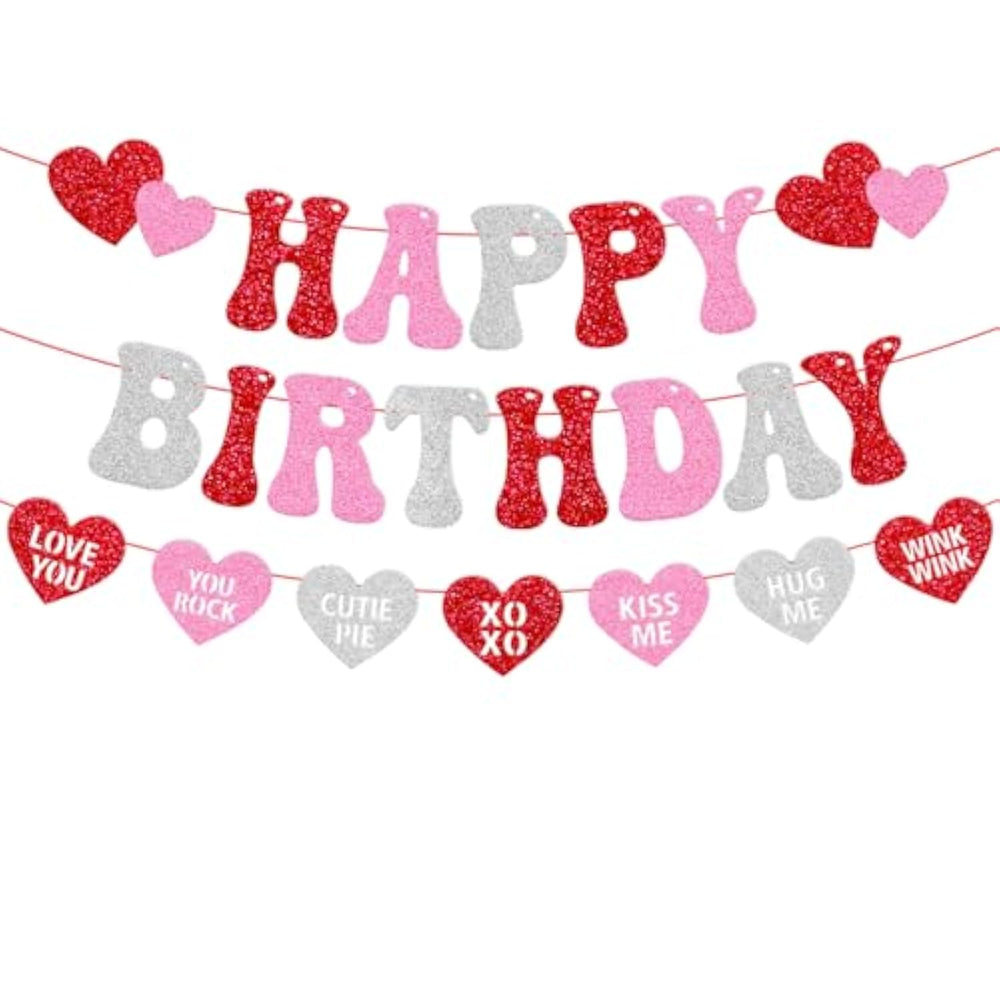 | Package Including:1 Set Valentine’S Day Happy Birthday Banner,The First One “Happy” Words Banner With Red And Pink Heart Patterns ,The Second One Is “Birthday” Words Banner,The Last One Is Colorful Heart Patterns Banner,Each Heart Pattern Has A Different Slogan On It.This Banners Romantic Design Add A Festive Touch To Your Valentine'S Day Birthday Celebration,This Banner Will Make Valentine'S Day Birthday Party Unforgettable For You And Your Loved One! | | Perfect Size:This Valentine’S Day Happy Birthday Banner,Each Banner Is Approx 38” Inches In Length,The Total Length Is Approx 114” Inches In Length. | | Excellent Material:Valentine’S Day Happy Birthday Banner Is Made Of Sturdy Card Stock And Can Be Reused Multiple Times.This Happy Birthday Banner And Heart Patterns Banner Will Easily Brighten Up Your Valentine’S Day Brthday Party Decor!Celebrate Valentine'S Day Birthday In A Unique And Romantic Way And Show Your Love To Your Loved One. | | Pre-Strung:Valentine’S Day Happy Birthday Banner Has Been Pre-Strung.You Do Not Need To Spend Time To Diy This Banner. All You Need To Do Is Unpack It And Hang It Up. | | Wide Application:Valentine’S Day Happy Birthday Banner Can Be Applied To Many Places, Such As The Wall,Door,Window And Fireplace Etc,Will Enhance The Vibrancy Of The Décor, This Banner Will Spice Up Valentine’S Day Birthday Party.It'S Perfect For Celebrating Valentine'S Day Birthday. | |
