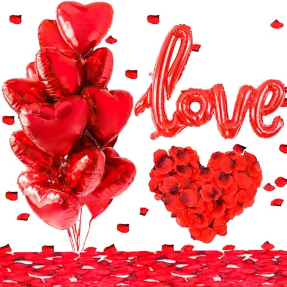 | [ Valentines Day Balloons Set ] -- Package Including 10Pcs 18 Inch Red Heart Foil Balloons, 1000Pcs Silk Rose Petals, 1Pcs 40 Inch Red Love Foil Balloon, 2 Rolls Red Balloon Ribbon, 1 Roll Glue Dot. | | [ Multiple Party Occasions Themes ] -- Our This Valentine'S Day Balloons Set Is Great For Many Parties, Like Valentine'S Day, Proposal Party, Engagement, Wedding, Anniversary, Mother'S Day, Galentines Party, Lover'S Party, Romantic Party Decorations, Surprise Party For Wife, Hasband, Or Any Couple Who Wants To Celebrate Their Big Day And More. Each One Is A Great Choice And Would Never Let You Down! | | [ Romantic Party Decorations ] -- With These Valentines Decorations You Can Freely To Create A Romantic Party For Your Lover. 18 Inch Red Heart Foil Balloons Can Support Helium, But Please Be Carefully To Inflate Them Slowly To Avoid Over Inflation. With 1000Pcs Slik Rose Petals, There Are Many Romantic Scenes You Can Make, Like To Decorate Your Table, Room, Walkway And More. | | [ Simple To Assemble ] - - No Craft Experience Needed, You Can Freely To Use Your Hands And Imagination To Your Heart'S Content. | | [ Tips For You ] - Please Not Inflate Foil Balloons/ Latex Balloons Too Full, 75%-85% Is Ok. And Please Inflate Them Slowly To Avoid Over Inflation. | |