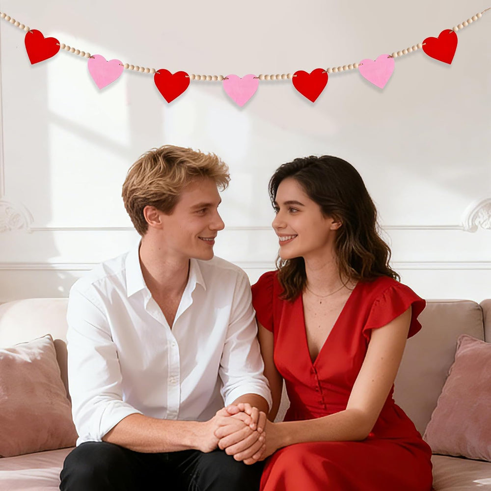 | Proper Size: The Wood Bead Garland Valentine Decor Boasts A Total Length Of 154Cm/60 Inches/5.05Ft, Featuring 48 Beads In Total. Each Heart Charm Measures 3.93*3.74 Inches. | | Unique Romantic Design: 4 Red + 3 Pink Wooden Hearts, Spaced With Wooden Beads, Pre-Strung On Jute Twine. Flexible, Movable Wooden Beads For Easy Decor Styling. Bohemian Chic Meets Sweet Elegance, Sturdy And Reusable For Home Decor Besides Holidays. | | No Diy-Easy To Install: Pre-Assembled For Easy Installation, Our Valentine Decorations Are Hassle-Free—Letting You Adorn Any Atmosphere Space You Like With Ease. Suitable For Homes (Bedrooms, Living Rooms, Hallways, Courtyards, Wall, Mentle, Kitchen) And Offices, Effortlessly Creating A Cozy, Romantic Atmosphere Wherever Hung. | | Versatile Valentines Garland: This Heart Decor Valentine Garland Is Perfect For Decorating Fireplaces, Mantels, Windows, Walls, Dessert Tables, And More. Ideal For Valentine’S Day, Weddings, Proposals, Anniversaries, Parties, Galentines Decorations And Other Special Occasions—Adding Romantic Charm And Festive Vibes. | | Great Gift Idea: A Wonderful Gift For Friends, Parents, Colleagues, And Neighbors—This Valentine'S Day Decor Brings Joy And Enhances Festive Vibes To Their Spaces. Perfect For Sharing With Loved Ones, It’S A Sweet Gesture To Share Joy, And Let Loved Ones Soak In The Tender Romantic Atmosphere. | |