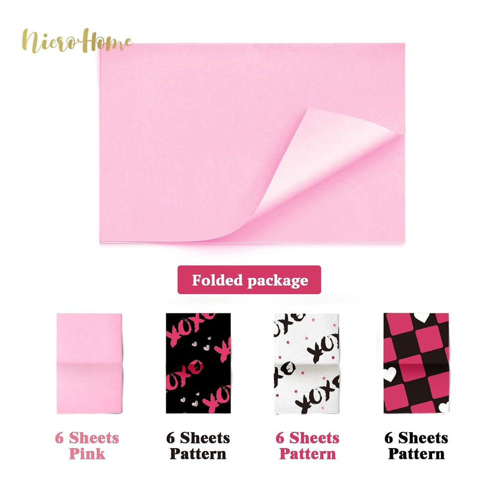 | Valentine'S Day Wrapping Set: Includes 12 Sheets Romantic Red Black Printed Tissue (Hearts, Xo Patterns), 6 Sheets Solid Pink, And 6 Sheets Printed White Tissue Paper. Total 24 Sheets Of 15X20 Inch High-Quality Tissue Paper, Perfect For Gifts, Decor, And Diy Projects Romantic Designs: Features Exclusive Valentine'S Patterns Like Hearts, Xoxo, And Kisses In Classic Red, Black, Pink, And White. Beautifully Coordinates For A Cohesive Holiday Theme, Perfect For Expressing Love And Celebration Premium Tissue: Made From Durable, Recyclable Tissue Paper That Resists Tearing During Wrapping. Provides A Smooth Finish And Holds Shape Well, Ensuring Your Gifts Look Professionally Wrapped And Cherished Versatile Craft Uses: Beyond Wrapping, Use For Diy Paper Flowers, Gift Bag Filler, Party Pom-Poms, Confetti, Table Runners, Scrapbooking, And Photo Backdrops. Ideal For Adding A Handmade Touch To Any Event Multi-Occasion: Not Just For Valentine’S Day! Great For Anniversaries, Weddings, Baby Showers, Birthdays, Galentine’S, Christmas, And Any Special Celebration. A Year-Round Essential For Creative Gifting And Decorating