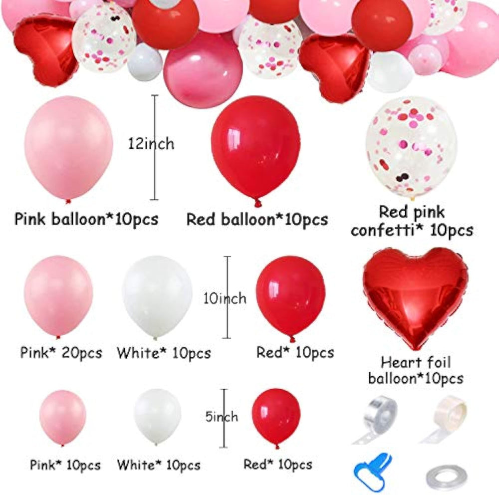 | 110 Pcs Valentines Balloons Kit: It’S A 110Pcs Valentines Day Red Pink White Balloon Arch Garland Kit Of Different Sizes, 12” Balloons Have Pink, Red And Pink Red Confetti Balloons, Each X 10Pcs; 10” Balloons Contain Pink, White, Red And Foil Heart Balloons, Each X 10Pcs Except Pink, Which Is 20Pcs; 5” Balloons Pink, White And Red Balloons, Each X 10Pcs; Balloon Strip, Tassel, Balloon Tie Tool, Glue Dot And Instructions To Help Finish The Fast And Easy Red Valentines Balloon Garland Making | | Bright Color Balloons: These Valentines Day Pink Red Balloon Arch Kit Have Very Bright Colors And Looks Charming When Setting Up, Your Partner Will Be Thrilled By These Beautiful Balloons. And We Provide More Than Enough Quantity And Multiple Sizes Of The Red Pink Balloons Kit Specially For Your Mother’S Day Decorations, Wedding, Proposal, Engagement Party Decoration, Etc | | Thicker Material: All Red Pink Balloon Garland Kit Are Using Natural Latex Material Except The Mylar Foil Balloons, 20% Thicker Than Common Balloons, Rest Assured For The Quality, No Smell And No Holes, Perfect For Indoor Or Outdoor Decorations But Remember Not To Fill Full Air Or Helium So They Can Last More Days | | Pre-Filled Confetti Balloons: We Provide Pre-Filled Pink Red White Confetti Balloons, Easy To Make Confetti Look Beautiful In Balloons, Just Add A Bit Water In The Balloon Before You Inflate Them So The Confetti Can Attach To The Balloons Easily, Try It | | Reliable Support: We Strive To Offer Top-Notch Products And Unparalleled Service. Whether You Need Help With Your Order, Have Questions About Our Products, Or Encounter Any Issues, Please Reach Out To Us | |