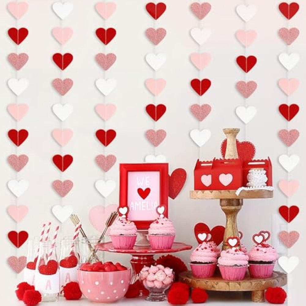 | Package Includes - These Adorable Glitter Heart Garland Strings Come With 8 Packs And Each Heart Garlands String Includes 20 Hearts In 4 Colors, Abundant Quantity Can Meet Your Valentine'S Day Party Decorating Needs | | Not Only Valentines Day Decorations - These Heart Garland Hanging Strings Will Add Sweet Touch To The Valentine'S Day, Wedding, Mother'S Day, Baby Shower, Birthday, Anniversary,Engagement,Burgundy Party Decorations, Rose Gold Party Decorations Or Other Special Event | | Direct Use - You Can Take These Heart Garland Banners Out Of The Package And Hang Them Wherever You Like Directly Because As Machine Sewing Designs, Each Heart Banner Is 6.6Ft Long And You Can Also Cut Them To The Length You Want To Decorate Your Party | | Widely Applications - These Heart Garland Streamers Will Create Strong Festive Atmosphere To The Window, Ceil, Table Tree Branches, Book Shelf, Above Dinning Table, Dessert Table, Bedrooms, Living Rooms, Dining Rooms, Door Away Or Everywhere Place You Want. | | Thick Cardstock Material - These Valentines Heart Garlands Can Be Reusable As Made Of High Quality Cardstock, Light Weight Hang And Not Easy Fall Down, Double Sign Design Can Add Festive Touch For The Each Corner | |