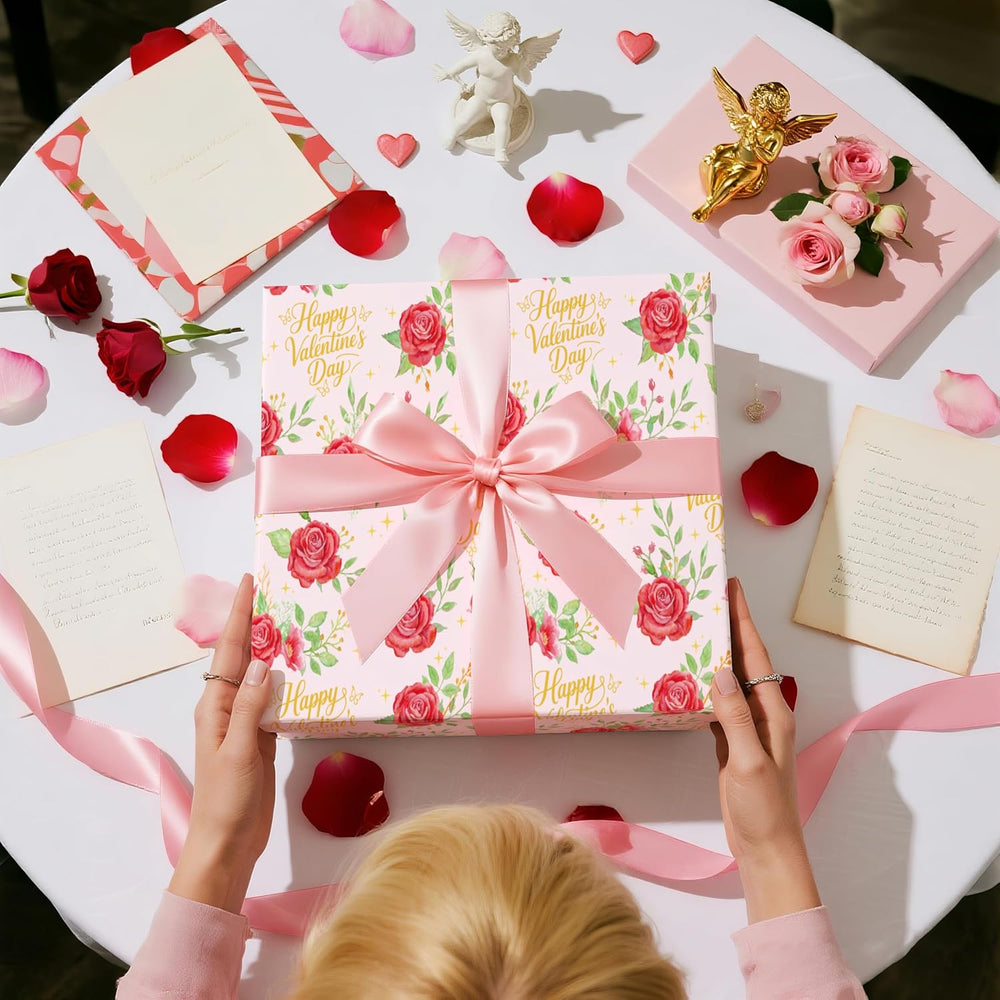 | Romantic Rose Design: Celebrate Love With Our Exquisite Wrapping Paper Featuring Hand-Painted Red Roses And Elegant Gold “Happy Valentine’S Day” Lettering. The Floral And Heartwarming Design Creates An Atmosphere Full Of Romance And Sincerity — Perfect For Expressing Love And Affection. Mini Roll: Sized At 17 Inches × 16.4 Feet, This Roll Provides Enough Paper To Wrap Multiple Gifts While Maintaining A Compact, Easy-To-Store Form. Ideal For Wrapping Perfume Boxes, Jewelry, Candles, Gift Sets, And More. Premium Coated Paper: Crafted From Durable Coated Paper, This Wrapping Paper Offers A Smooth Surface With Rich Color Printing That Resists Tearing And Creasing. The Sturdy Texture Ensures A Neat And Elegant Gift Presentation. Ideal For Romantic Occasions: Perfect For Valentine’S Day, Anniversaries, Weddings, Engagements, And Romantic Surprises. Whether It’S A Thoughtful Gift For Your Wife, Girlfriend, Or Partner, This Wrapping Paper Turns Every Present Into A Heartfelt Gesture Of Love. Elegant And Versatile Style: With Its Blush Pink Background, Gold Accents, And Timeless Floral Details, This Wrapping Paper Blends Luxury And Warmth. It Suits Both Modern And Vintage-Style Gift Wrapping, Enhancing Your Gift’S Charm And Visual Appeal