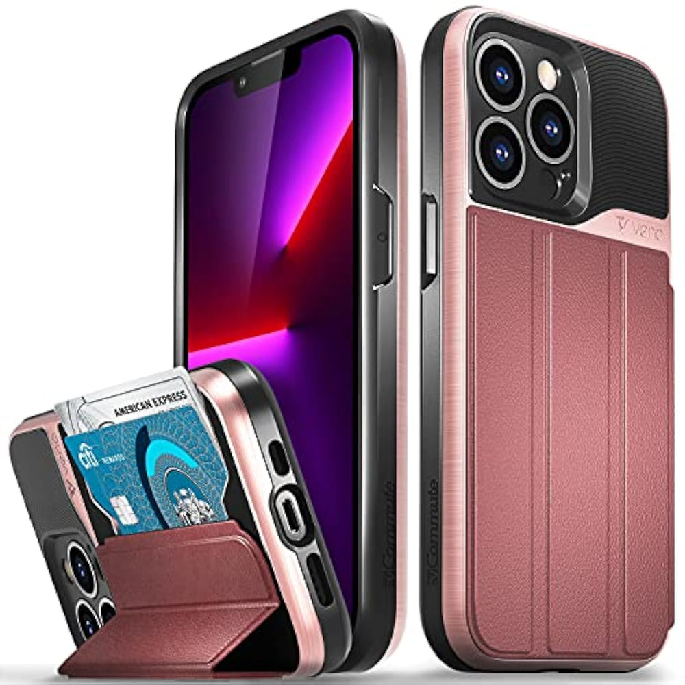 | [PATENTED WALLET CASE COMPATIBLE WITH iPhone 13 Pro (6.1")] vCommute combines functionality and protection. The hidden card slot securely stores IDs, credit or debit cards, or even transit cards; plus it does not interfere with Apple Pay. Compatible with iPhone 13 Pro (6.1"). | | [MULTI-ANGLE MAGNETIC LOCK STAND] The foldable leather flap on the back of the case doubles as a kickstand so you can watch videos at desired angle and comfort. | | [MILITARY GRADE DROP PROTECTION WITH CORNERGUARD TECHNOLOGY] Dual-layer polycarbonate and TPU with CornerGuard meets military drop-test standard (MIL-STD 810G-516.6), surviving 26 drops from 8 feet high. | | [PRECISE CRAFTSMANSHIP, DETAILED DESIGN] Precise cutouts and great tactile buttons designed to maintain the same great tactile feedback from your phone’s buttons. | | [COMPATIBLE WITH MAGNETIC CAR MOUNTS] This wallet case comes with metal plates incorporated in the flap, therefore no additional plate or adhesive is needed. | |