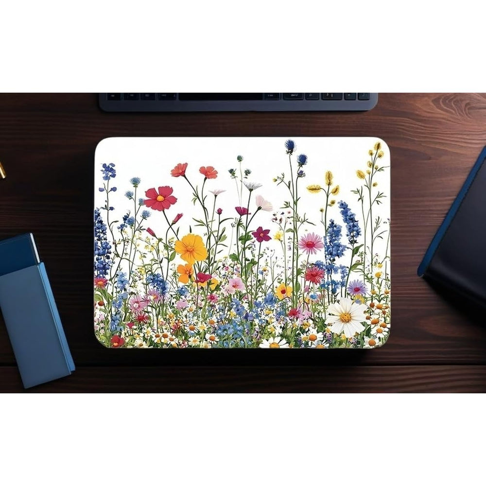 | Brighten Your Desk – Washable Floral Design?Cheerful Field Of Colorful Flowers Printed On A Waterproof Surface That’S Easy To Clean And Resists Fading. | | Smooth Movement, Non-Slip Grip?Cloth Top Lets Your Mouse Glide Effortlessly, While The Natural Rubber Base Prevents Slips On Any Surface. | | Lightweight Space-Friendly?Slim 0.12" Thickness Fits Any Desk, Keeps Flat Without Curling—Perfect For Compact Setups. | | Stitched Edges For Long-Lasting Use?Edge Stitching Keeps Your Pad Neat And Prevents Wear Even With Daily Use. | | Color Joy?A Delightful Desk Accessory For Women, Teens, Students—Perfect For Brightening Work, Study, Or Home Offices. | |