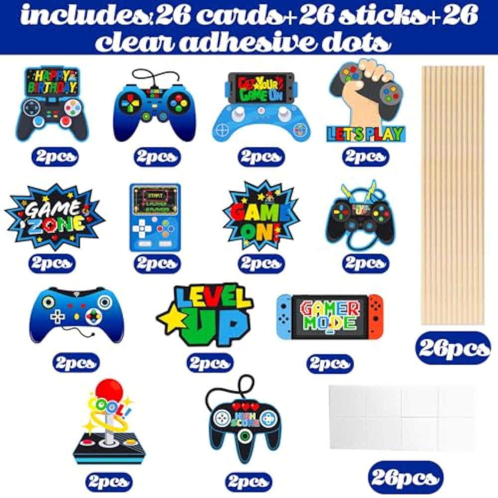 | ??26Pcs Video Game Centerpiece Sticks?You Will Receive A Total Of 26Pcs Blue Video Game Centerpiece Sticks Which Are Designed With 13 Game Themed Patterns And 2Pcs Of Each Pattern. Classic And Enough Quantity To Satisfy Your Various Game Themed Party Or Festival Needs. | | ??Gamer Birthday Party Decorations?The Gamer Table Centerpieces Not Only Perfect For Video Game Party, Gamer Birthday Party, Game On Party, Level Up Birthday Party At The Same Time Can Also Be Used As Daily Decoration For Your Room, Kitchen, Garden Or Porch. | | ??Gaming Birthday Decorations?Exciting Gaming Themed Slogans And Patterns Include Gamepad, Game Console, Level Up, Game On, Level Up And More. Cool Gaming Slogans And Happy Birthday Signs Create A Unique And Surprising Gamer Birthday Party. | | ??Video Game Party Table Decorations?Our Gaming Birthday Party Supplies Are Made With Wooden Sticks And Sturdy Cardboard. Even Repeated Use Of Bright Game On Patterns Will Still Make A Visual Impact On Your Guests. Not To Be Missed By Game Enthusiasts. | | ??Game Zone Table Centerpieces?Super Easy To Assemble This Gaming Table Decorations. Just Use The Stickers To Attach The Gaming Party Cutout To The Wooden Sticks. Then The Assembly Is Complete. Saving Time And Effort Makes It Easy To Set Up Your Game Party. | |