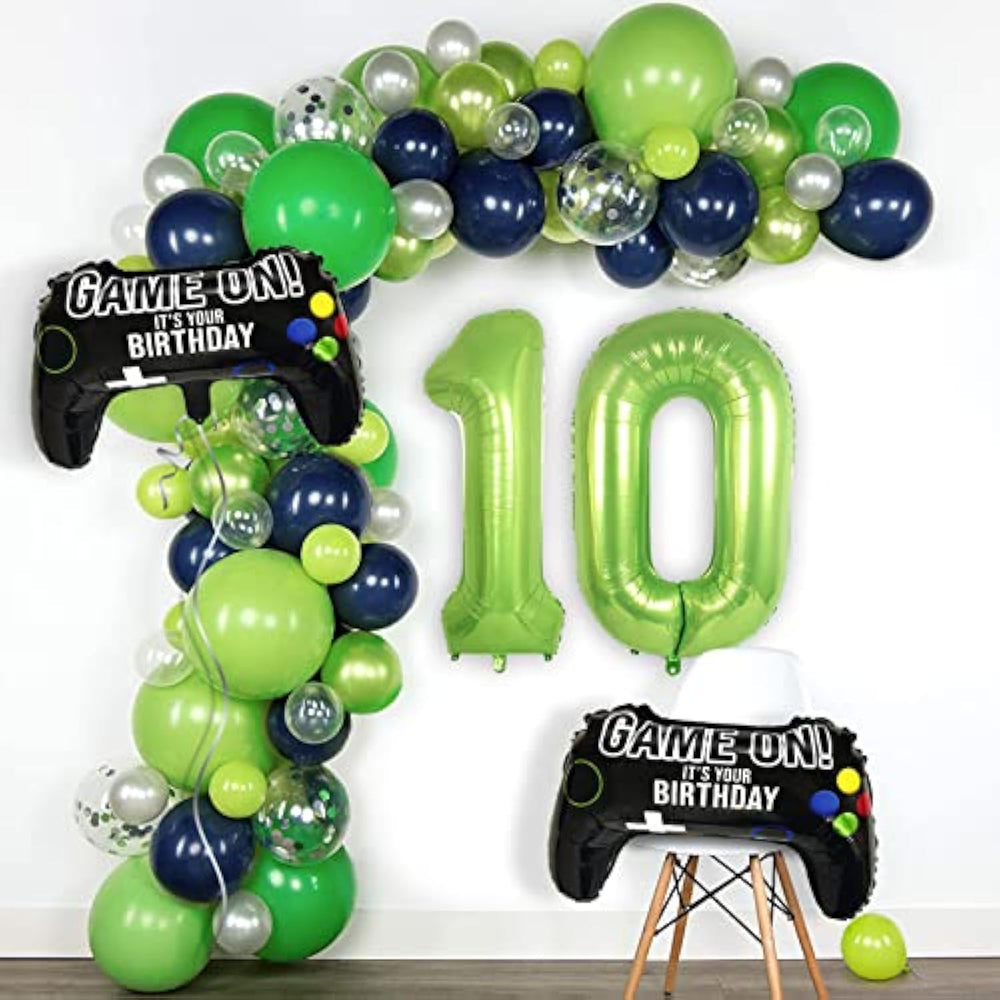 | Game Birthday Party Supplies: You Will Get 2 X Black Game On Print Controller Balloons, 1 X Giant Lime Green Number 10 Balloon | | Gamer Party Decoration Ideas: Throw These Balloons For A 10 Year Old Boy Birthday Decorations, Level Up Birthday Party, Game On Party Supplies, Video Gaming Party Decorations | | Easy To Decor: This Is The Easiest Decoration With A Big "Wow" Highlight Factor At A Game Themed Birthday Celebration, Tie Up Them On The Balloon Arch Or Make Them Float | | Easyl To Inflate: These Balloons Can Be Filled With Either Air Or Helium, If You Want Them To Float, Have Them Pumped With Helium, Pinch The Value To Seal Balloons When The Inflation Done | | Commitment: Please Do Not Over Inflate, If Balloons Pop Or Occur Other Defective Issue,