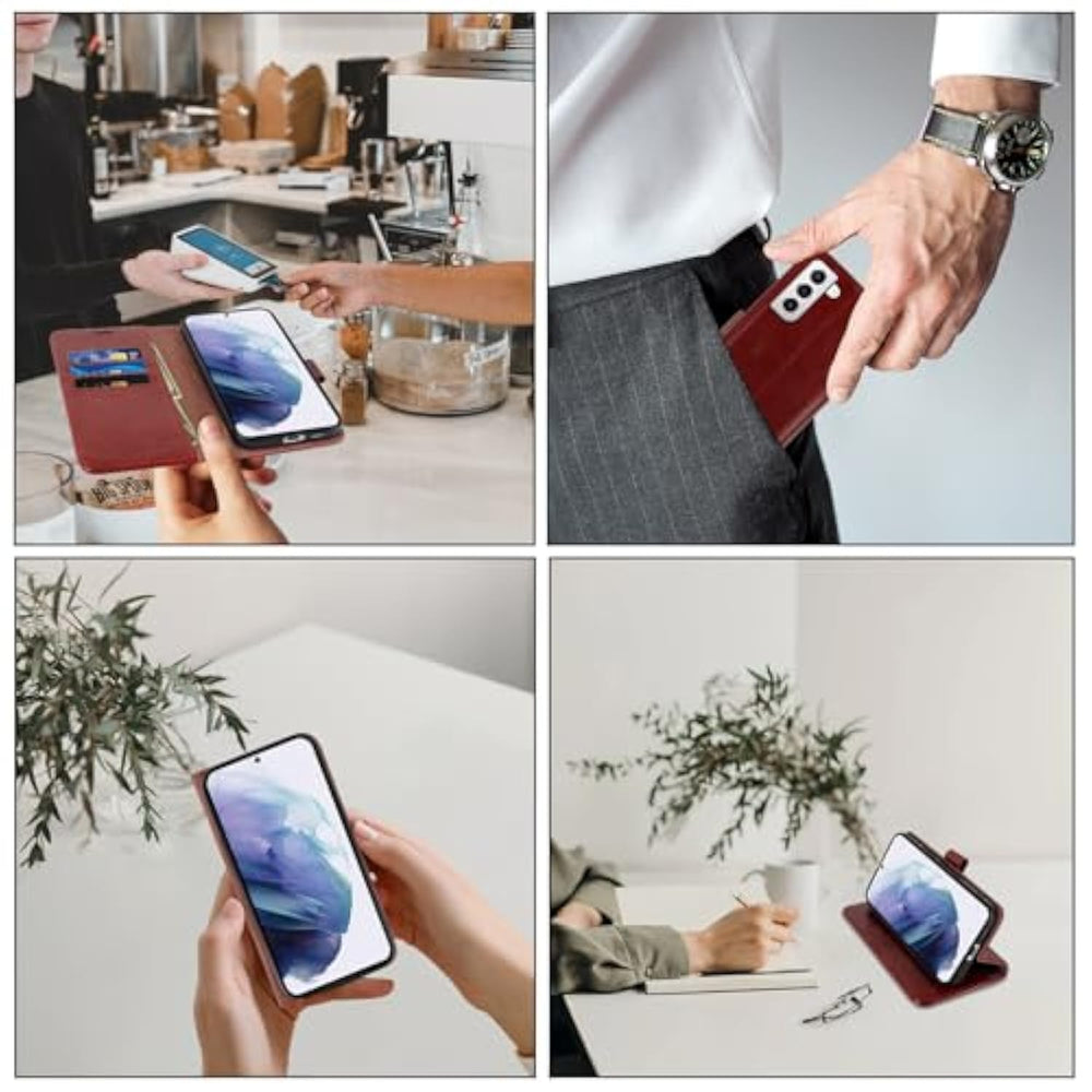 | Compatibility And Convenience Design: Compatible For Samsung Galaxy S21 5G 6.2 Inch, This Flip Folio Leather Wallet Case With Card Slot Holder And A Cash Pocket Can Store Credit Cards And Up To 4 Bills And Screen Protector Included. Internal Rfid Blocking Interlayer Material To Keep Your Personal Information Safe | | Precise Craft And Perfect Design: Our Handmade Phone Case Is Crafted With Premium Leather, Covers 360°Bezels Protection Of Your Samsung Galaxy S21 And Includes Raised Sides To Prevent Screen Scratches And Any Other Daily Wear. Ultra-Strong Magnetic Closure Provides Security And Peaceful Mind | | Material: Dual Layer Leather Will Become More Protective Of Your Phone, It Resists Stretching And Fading Over Time And Even Stands Up To The Occasional Splash Or Drop On The Floor | | Kickstand Function: Horizontal + Vertical Kick-Stand,The Stand Function Can Read And Watch Movies.Convenient Design Meets Daily Needs | | Reliable-Assurance: Portfolio Phone Wallet Case Compatible For Samsung Galaxy S21?360 Days Without Worry | |