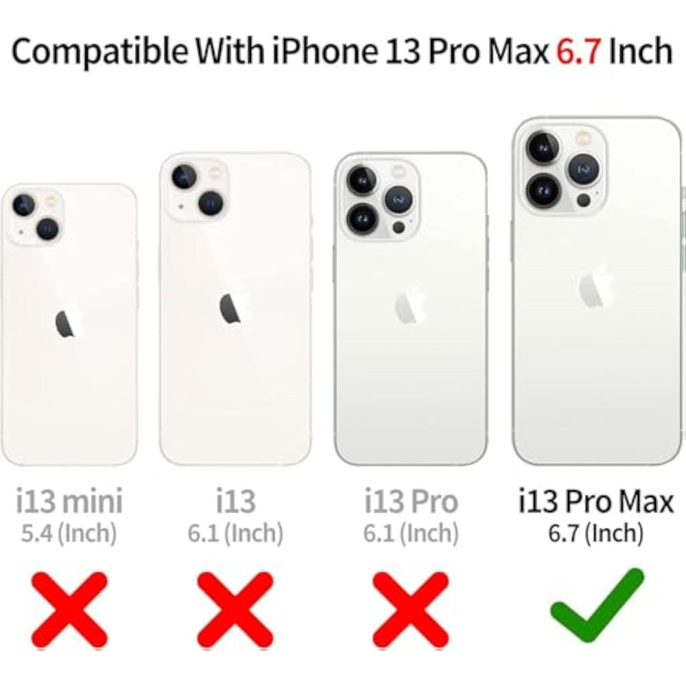 | Perfectly Compatible With Apple Iphone 13 Pro Max (2021) (6.7 Inch Display). | | With 4 Card Slots Designed, Conveniently To Store Cards, Id, License Or Some Cashes. | | Steady Magnetic Buckles Keep Cards / Cashes Safe And Secure, No Worries About Things Slip Out. | | Precise Cutouts And Design, Easy Access To All Buttons, Cameras And Ports. | | Service For All Products; If You Have Any Issue With Our Item, Please
