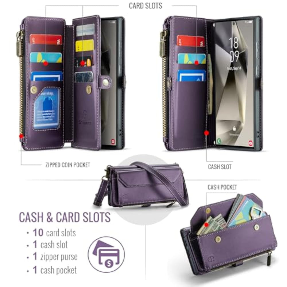 | Designed For Samsung Galaxy S24 Ultra Wallet Case: Our Premium Pu Leather Case Is Designed To Fit The Exact Specifications Of The Samsung Galaxy S24 Ultra (6.8-Inch Screen) For Maximum Protection Against Scratches And Other Damage; Please Note It Is Not Compatible With Galaxy S24, Galaxy S24 Fe Or Galaxy S24 Plus Models | | Detachable Lanyard Shoulder Strap And Wristlet: Enhance Your Experience With The Samsung S24 Ultra Flip Case, A Versatile Design With A Removable Long Shoulder Strap For Lanyard Comfort; The Included Detachable Wrist Strap Offers An Extra Way To Keep Your Phone And Wallet Secure On The Go | | Multi-Functional Wallet Case For Samsung S24 Ultra 5G: This Leather Case For Galaxy S24 Ultra Doubles As A Wallet With 10 Card Slots, A Zipped Coin Pocket And A Cash Pocket. You Can Keep Your Id, Credit Cards, Notes And Coins All In One Convenient Place, Effortlessly Combining Fashion And Functionality | | Rfid Blocking 10-Card Slots: This Samsung S24 Ultra Wallet Case For Women And Men Uses Advanced Rfid-Blocking Technology To Secure Your Credit Card Information From Un