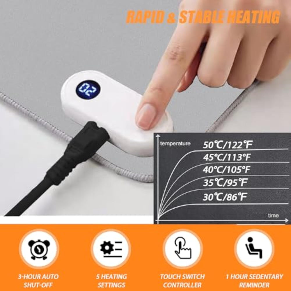 | Rapid Stable Heating:Because Of Excellent Chip This Office Desk Mat Ensures Rapid Heating And The Temperature Is Stable. This Gaming Mouse Pad Will Reach The Required Temperature Within A Few Minutes And You Do Need To Worry About Working Or Typing With Cold Hands Any More. It Must Be A Warm Winter | | Five Levels Of Temperature Automatic Shutdown:This Warm Desk Pad Has Five Levels Of Temperature Which You Can Adjust,30°C, 35°C, 40°C, 45°C, 50°C(±5°C). Different Temperatures Meet Different Needs. In Order To Prevent Accidents, This Heated Mouse Pad Automati