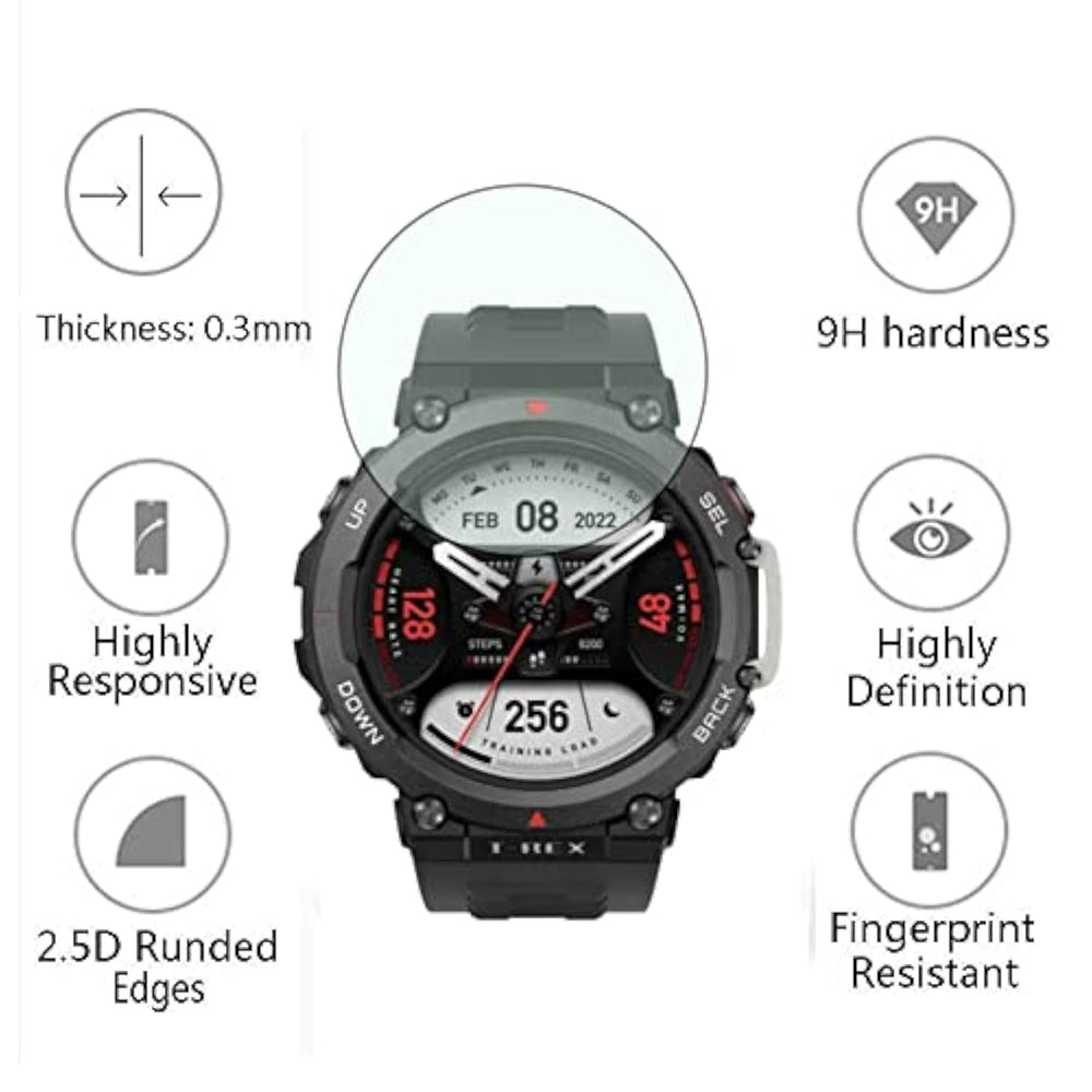 | Designed For :Compatible For Amazfit T-Rex 2 , (3 Pcs) Tempered Glass Film And (1 Pcs) Soft Tpu Protective Case | | Greatest Protection: Extremely High Hardness,Resists Scratches Up To 9H Tempered Glass With Long Lasting Protection. | | 99.99% Hd Clarity And Touchscreen Accuracy: High-Response, High-Transparency. | | Case: Make From High Quality Durable Material To Give Excellent Protection | | Super Easily Installation: Allows Adjustments During Installation.Significantly Reduces Dust, Oil And Fingerprint Smudges | |