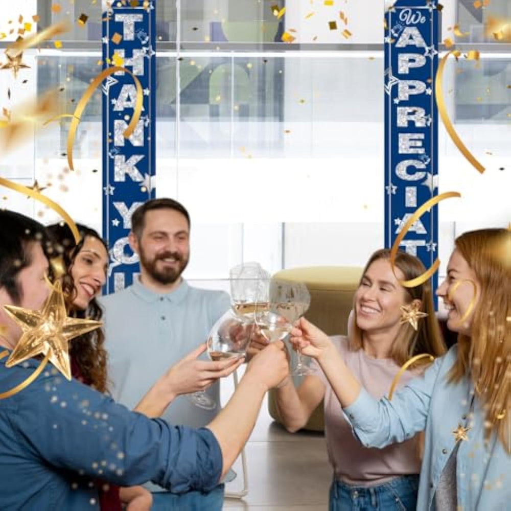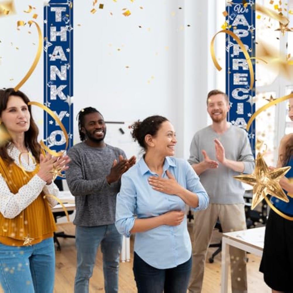| ?Large Size, Lasting Quality?: Our Blue And Silver Thank You Hanging Door Banner Is 71" Long And 11.8" Wide, Large Enough To Be Seen From A Distance. Made Of High-Quality Polyester Fabric To Ensure Durability, Reusability, And Fade Resistance. Each "We Appreciate You" Backdrop Has Embedded Loops On Both Corners For You To Decorate Or Hang Anywhere. | | ?Versatile Placement For Heartfelt Impact?: From Walls To Mantels, From Garage Doors To Classrooms Or Dessert Tables, Even Balconies, Porches, Bars, And Front Doors, Our Blue And Silver Thank You Banner Backdrop Will Find Its Place In Any Environment, Ensuring Your Gratitude Shines And Touches Hearts Wherever It Is Hung. | | ?Ideal For Various Appreciation Themes Decorations?: Whether It'S A Teacher Retirement Party, Decorations For Teacher Appreciation Week, Doctor Appreciation, Nurse Appreciation, Employee Staff Appreciation, Pastor Appreciation, Volunteer Appreciation, Or Decorations For Office Celebrations, Work Anniversary, Administrative Professional Day, Memorial Day, Or 2024 Graduation Party, Our Thank You Porch Sign Is The Perfect Adornment. | | ?Eye-Catching Blue And Silver We Appreciate You Decorations?: Featuring A Vibrant Blue And Silver Color Combination, Our Big We Appreciate You Banner Catches The Eye And Warms The Heart, Making It Suitable For Casual And Formal Gatherings. With The Heartfelt Message "Thank You For Your Dedication And Hard Work. We Appreciate You,", It'S More Than Just Decoration—It'S A Sincere Thank-You Note For Everyone To See. | | ?Essential Thank You Decoration For Unforgettable Gratitude?: Elevate Your Appreciation Gatherings With Our Large We Appreciate You Backdrop, Transforming Them Into Memorable Events That Honor And Celebrate Gratitude In All Its Forms. Let Our Fabric Thank You Backdrop Decorations Be The Centerpiece Of Your Gratitude, Ensuring That Your Event Is Etched Into The Hearts Of All Who Attend. | |