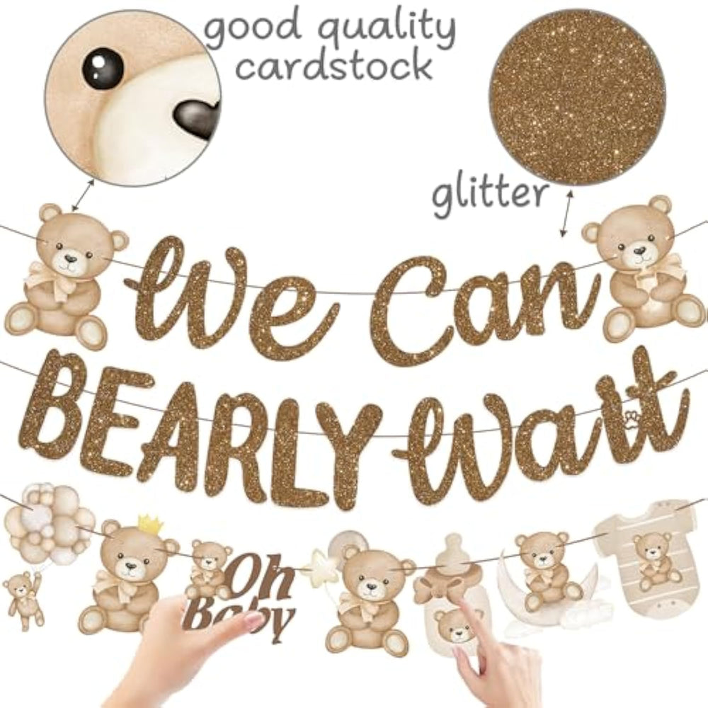 | ???3Pcs Teddy Bear Baby Shower Decoration?A Total Of 3Pcs Teddy Bear Baby Shower Banners Perfect Size Perfect For Welcoming Your Baby'S Arrival. Also Suitable For Bear Themed Baby Shower, We Can Bearly Wait Party, Teddy Bear Birthday Party, Family Gathering, Festival And So On. | | ???Glitter Brown We Can Bearly Wait Banner?The Gold Glitter Classic We Can Bearly Wait Slogan Is Designed Inside This Teddy Bear Baby Shower Decoration. Cardboard Cutouts Of One Delightful Bear After Another Add To The Charming Look Of The Decoration. | | ???No Stringing Required Bear Party Banners?This Teddy Bear Baby Shower Supplies Has Been Pre-Strung Before Sale, No Need To Diy, You Just Need To Hang It Where You Want To Hang It. It'S Also Easy To Store When You'Re Not Using It And Saving Your Space. | | ???Double-Sided Teddy Bear Baby Shower Supplies?The Fantastic Bear Pattern Is Printed On Both Sides And Hang It Up To Be Seen Clearly In Any Position. The Colors Are Eye-Catching And Bright Enough To Bring A Big Surprise To Your Party! | | ???Packed In Good Gender Reveal Party Supplies?The Brown Bear Gender Reveal Party Supplies Are Hand-Packed And Inspected In Advance So That You Receive The Product In Perfect Condition. If There Is Still A Problem With The Product, We Will Do Our Best To Help You Solve It. | |