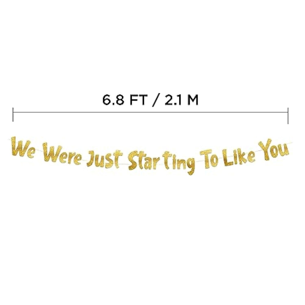 | Banner Comes Pre-Strung | | Retirements Are A Long Awaited Milestone And What Better Way To Celebrate Than With Our Premium Quality "We Were Just Starting To Like You" Gold Glitter Banner. | | Quality: The Beautiful, Gold Glitter Accents Matches The High Quality Lettering And Will Definitely Catch The Attention Of Your Loved Ones When They Shimmer In The Light. Our Retirement Party Decorations Are Sturdy But Not Heavy And Mean To Be Reused. | | Size: Banner Is Petite And Measures Approximately 6.8 Feet. First Great Above A Dessert Table Or Fireplace Mantle. | |