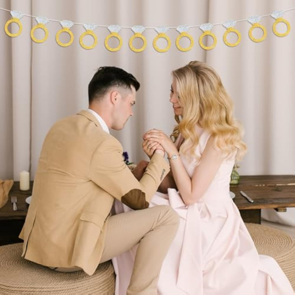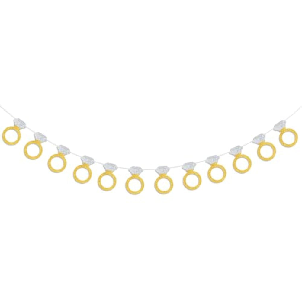 | Package Size: You Will Get 12 Ring Banners That Measure About 6.2X4.5 Inches; A Long White Ribbon To Go With It. Big And Beautiful For Bachelorette Party/Engagement Party | | Premium Quality Material: Carefully Selected Thick Glitter Cardstock Made To Create Banners With Durability. Reusable! Bright And Long Lasting Colors, Not Easy To Fade. Both Ends Of The Birthday Banner Have Strings For Easy Hanging. | | Easy Assembly: You Can String The Ring Banners With Ribbons And The Spacing Between The Banners Can Be Adjusted. You Can Also Move These Flags To Create Different Effects By Diy Yourself. | | Unique Design: This Wedding Diamond Ring Banner Simulates The Luxury Feeling Of Real Diamond Rings With Gold And Silver Design, And It Is Glitter Cardboard, Glittering And Hanging At The Party Site, Just Like Real Diamond Rings. Suitable For Any Age | | Party Decoration: Great Backdrop For Party Photos, You Can Use It To Decorate Walls, Backdrops, Photo Props And More. Create Engagement Decorations, Bridal Shower Decorations, Birthday Parties, Baby Shower For That Special Man Or Woman. | |