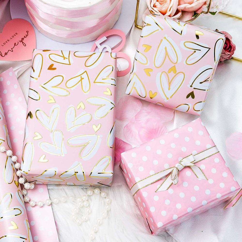| Wedding Wrapping Pape: Features Gold Foil Hearts And Gold Little Heart On A Pale Pink Background. Create A Pretty Gift Presentation With This Pink Gift Wrap Decorated With Gold Eyelet Hearts Bridal Wrapping Paper: Made From 90 Gsm Paper, Combining Elegance With Long-Lasting Durability. Thick, Robust Construction Makes Our Wrapping Paper Resistant To Tears Wrapping Paper Roll: 17 Inches Wide By 33 Feet Long Is Designed For Convenience. The Compact Size Suitable For Small And Medium Gift Wrapping Paper, While Being Easy To Store Among Your Craft Supplies Love-Filled Occasions: Add Charm To Your Gifts With Our Romantic Heart Gift Wrap. Ideal For Anniversaries, Baby Showers, And Couples’ Celebrations, This Wrapping Paper Beautifully Conveys Love And Happiness After Sale Service: We Offer 7×24 Round-The-Clock Online Services To Answer Your Questions Or Provide Assistance Anytime! Whether It’S A General Inquiry, After Sale Service, You Can Reach Us Through The Email