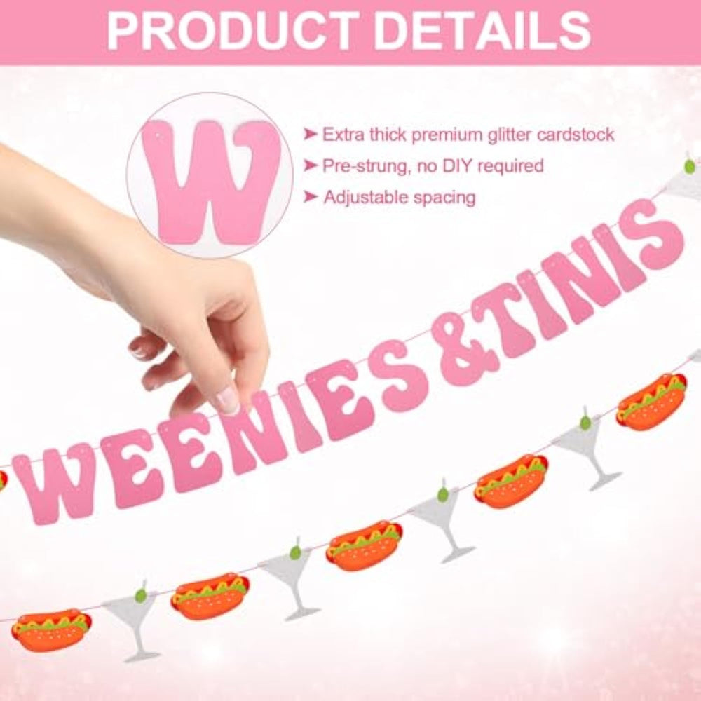 | Packaging: You Will Receive A Pink Glitter Weenies Tinis Banner To Make Your Holiday Party Celebration Special And Fulfill Your Usage Needs. | | Material: Our Product Is Made Of Quality Extra Thick Premium Cardstock With Glitter Attached To The Surface, Perfect For A Martini Themed Bachelorette Birthday Party. | | Size: Our Banners Are In Total Length Of 3M / 9.8Ft, Pre-Assembled, No Need To Do It Yourself, Adjustable Spacing For Your Convenience. | | Design: Our Banner Has Hot Dog And Wine Glass Design, Super Cute, Shiny Pink Color Attracts Eyes, You Can Use It Without Worry. | | Application: Perfect For Your Holiday Party, Easily Add Them To Mantels, Banisters, Windows, Desert Tables, Or Even Use As A Photo Backdrop. | |