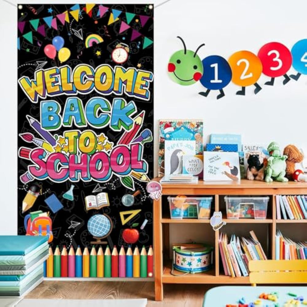 | Back To School Party Decorations: Welcome Back To School Door Banner Is Designed With A Lot Of School Elements, 71 X 35 Inch Large Size Make The Back To School Banner More Visible And Attractive Enough For Back To School Party Decorations | | Reliable Material: Welcome Back To School Banner Made Of High Quality Polyester Intended To Be Used For Years To Come In Back To School Party Supplies, Durable, Bright Colors, Clear Printing, No Odor, Smooth And Comfortable To The Touch Due To Fine Workmanship, Indoor And Outdoor Can Be Used | | Easy To Install: First Day Of School Banner There Are 4 Brass Holes Distributed On Each Of The 4 Corners, Plus 20 Feet Of Rope, It Is Easy To Install It Anywhere You Want, You Can Hang It Up Or Place It Horizontally | | Wide Application: This Welcome Back To School Banners Is Perfectly Used As Back To School Classroom Party Decorations, Photo Studio Photography Or Wall Decors, Home Decor, Yard, Front Door, Table, Photo Booths, Photography Props, It Will Definitely Be A Hit For Your Back To School Party Event | | Nice Service: Your Satisfaction Is Our Top Priority, If You Have Any Problems With The Items You Receive, Our
