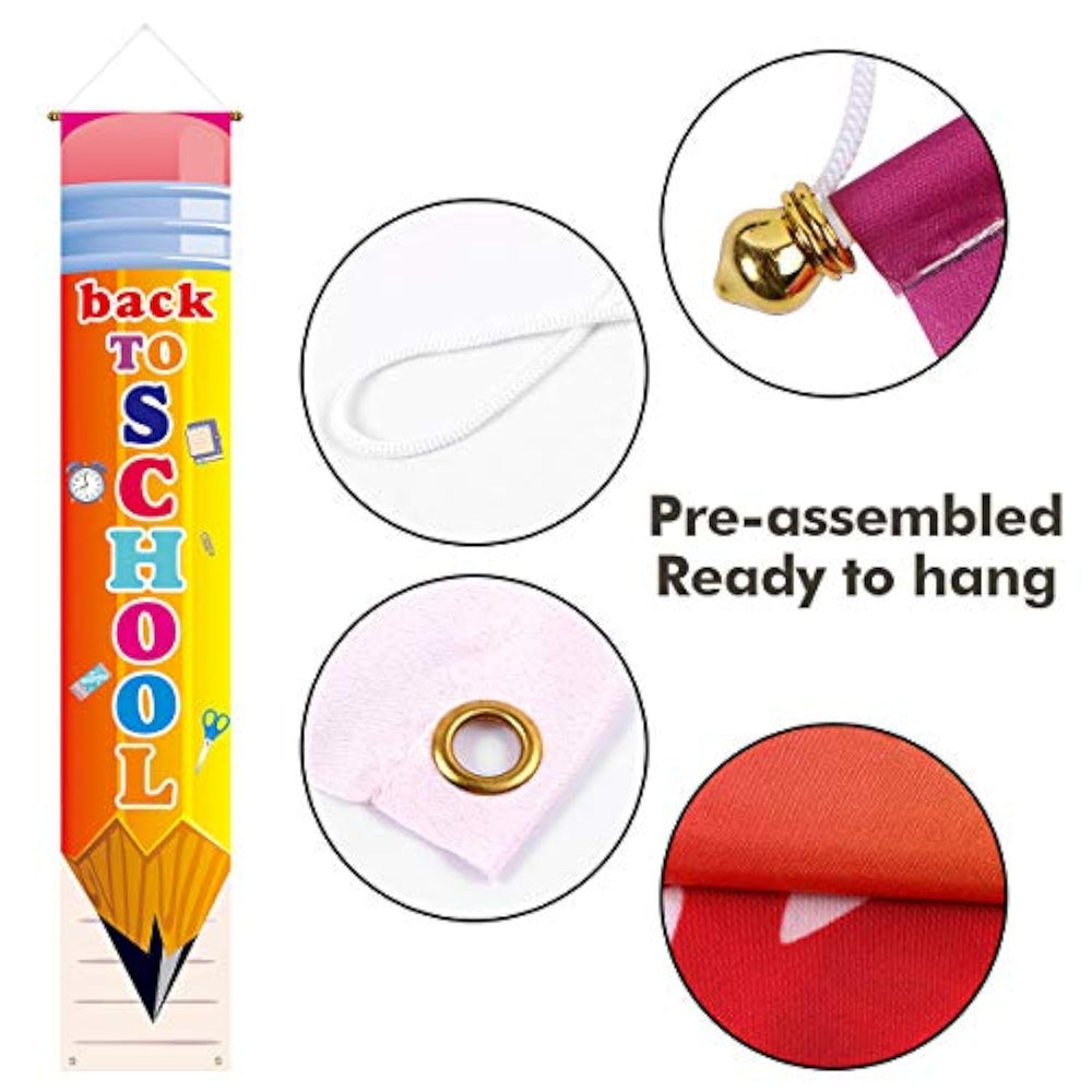| Package Including - 12 X 72 Inch "Welcome" Banner And 12 X 72 Inch "Back To School" Banner, Fit For First Day Of School Or Back To School As A Welcoming Front Door Sign Or Party Decorations. | | High Quality Material - This Welcome Back To School Backdrop Banner Made Of High Quality Polyester.Light And Strong. | | Easy To Use - They Are Already Assembled, You Can Hang Them Where You Want To Decorate.They Come With Secure Ropes, So They Won'T Get Blown And Twisted About With The Slightest Breeze. | | You Can Put This To Your Party As Photo Booth Backdrop,Wall Decor,Door Decorations, Party Supplies.This Is A Decorative Background That Will Make Your Party Photos Interesting! | | You Can Hang It On A Front Door, Stand, Fence, Tree, Wall, Garage Door To Give Great Congratulations To The Guests/Kids/Classmates/Students. Combining With Other Welcome Back To School Themed Party Supplies And Solid Colored Party Decorations Will Create A Completely Festive Atmosphere At Your Party. | |