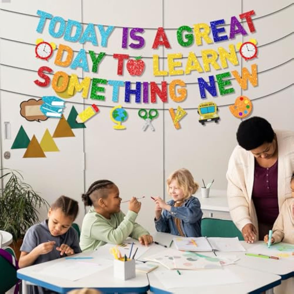 | Welcome School Banner:Celebrate 1St Day Of School With This School Welcome Banner;Today Is A Great Day To Learn Something New School Banner Is A Good Choice To Decorate Your Classroom And School For Welcome School Sign | | High Quality:Colorful Classroom Welcome Banner Is Made Of Sturdy Paper, Welcome Back To School Banner Can Be Reused, Not Easily Damaged,Safe And Harmless.Just Hang Welcome Banner For Classroom With A String, Easy To Hang | | Apply To:Suitable For Welcome To School Decorations,School Welcome Sign,Welcome Signs For Classroom.You Can Hang Welcome Banners For Classroom In Many Places,Such As Walls, Fireplace, Dessert Tables, Windows, Etc,.Welcome To School Banner Can Express Your Joy | | Design:Glitter Welcome Classroom Banner Gives You More Options For Your Party.Glitter Colorful Design With Word "Today Is A Great Day To Learn Something New "And Pattern Apple,Pencil Bring Happiness To Your Party Theme Decorations | | Service:You Can Ask Any Questions About Today Is A Great Day To Learn Something New Welcome Banner Classroom Decor. I Believe That Both Product And Service Can Bring You A Pleasant Experience | |