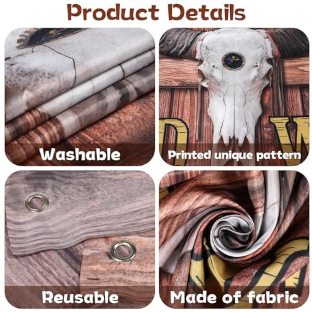 | Package Contents: You'Ll Get 1 Piece Of Wild West Door Top Banner Measuring 162 X 77.5Cm/63.8 X 30.5 Inches And 2 Pieces Of Western-Themed Door Banner, Measuring 180 X 30Cm/70.9 X 11.8In. With Its Proper Size And Beautiful Design, It Effortlessly Fulfills All Your Western Party Decoration Requirements. | | High-Quality Material: Made Of Premium Polyester Fabric, The West Cowboy Party Saloon Door Banner Decoration Boasts A Smooth Surface And Exceptional Durability.Western Themed Party Banner Is Lightweight, Washable, And Foldable, Allowing For Easy Storage And Transportation. | | Easy To Use: The Western Cowboy Banner Is Easy To Assemble.Western Door Banner Has Holes In It And Comes With A Long Rope.Put The String Through The Holes Of The Door Banner To Hang Directly, Saving Your Decoration Time. | | Eye-Catching Design:The West Cowboy Party Banner Features Classic Western Style Colors And Graphics. Decorate Your Party With A Wild West Banner That Will Catch The Eyes Of All Your Guests And Become An Eye-Catching Centerpiece. | | Wide Application: Our Western-Themed Saloon Door Decorations Are The Ideal Addition To A Wide Range Of Western-Themed Events, Leaving A Lasting Impression On Guests At Parties, Themed Weddings, Photo Shoots, And More, Instantly Transporting Guests To A Time Of Cowboys, Saloons, And Adventure. | |