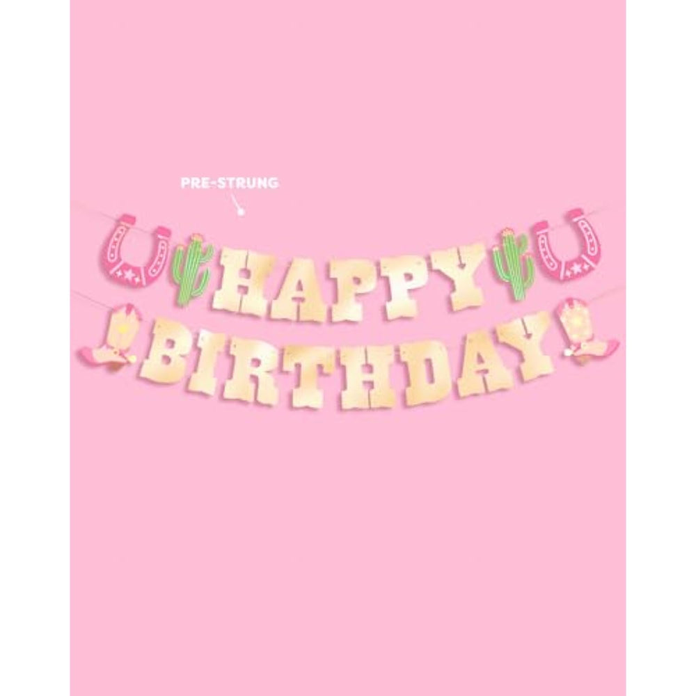 | Hbd: Our Gold Foil Western Happy Birthday Banner Is The Party Addition You'Ve Been Looking For + A Hit! | | Foil Details: This Banner Features A Gold Foil Paper Finish With Letters That Spell Out "Happy Birthday" - Think Super Fun + Shiny! | | For That Special Day: One Size Fits All! Perfect For Any Birthday Cowboy Or Cowgirl! | | Ready To Party: This Banner Is Pre-Strung On Two Gold Strings And Ready For Action! | | Size: Each Set Comes With One Banner That Reads "Happy" Between Cacti And Horseshoes + A Banner That Says "Birthday" Between Pink Cowgirl Boots. Each Banner Spans 4.5 Feet Total! | |