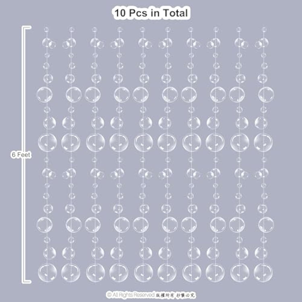 | Package Includes: 10 Strings Of 6-Foot Bubble Garlands Made From Semi-Transparent Printed Plastic With 3D Bubble Look In White And Blue. Each Strand Comes Pre-Assembled And Packed Separately. The Largest Bubble Is 4.7 Inches. Total Of 60 Feet Of Bubble Streamers Makes It Ideal For Underwater Party Decorations, Mermaid Theme Birthday, And Spongebob Party Supplies. | | Bubble Design For Sea Themed Parties: This Bubble Garland Features Realistic Bubble Shapes With A Soft Shimmer Effect To Bring Ocean Vibes To Any Celebration. It Works Perfectly As Under The Sea Party Decorations, Beach Party Garland, Mermaid Party Decorations, Or Aquatic Theme Backdrop For Kids Birthdays, Showers, Or Classroom Décor. | | Versatile For Many Occasions: These Garlands Are Great For Bubble Birthday Decorations, Spongebob Decorations Birthday Party, Moana Birthday Decorations, Shark Party Decorations, Cruise Or Nautical Party, And Beach Themed Birthday Decorations. Add An Ocean Touch To Pool Parties, Gender Reveals, Or Underwater Adventure Themes. | | Easy To Hang And Reuse: Garlands Are Lightweight And Easy To Hang Using Silver String. Recommended To Hang On Dark, Colored, Or Vibrant Backgrounds For A Floating Bubble Effect. Can Be Hung On Walls, Ceilings, Tables, Photo Booths, Doorways, Or Even Bathrooms. Cut Or Adjust Strands As Needed For Custom Bubble Decor. | | High Quality And Reusable: Made From Tear-Resistant Plastic And Strong Silver String, Our Bubble String Decorations Are Sturdy, Reusable, And Long-Lasting. Perfect For Multiple Events Like Bubble Guppies Birthday Party Decorations, Baby Shark Girl Party, Or Under The Sea Classroom Decorations. | | Magical Ocean Decoration: Perfect For Themed Events Like Finding Nemo Birthday, Lilo And Stitch Party, Whale Or Dolphin Birthday Parties, Jellyfish Decorations, Or Rainbow Fish Celebrations. Add Whimsical Charm With These Floating Bubble Decorations And Make Your Under Sea Party Unforgettable | |