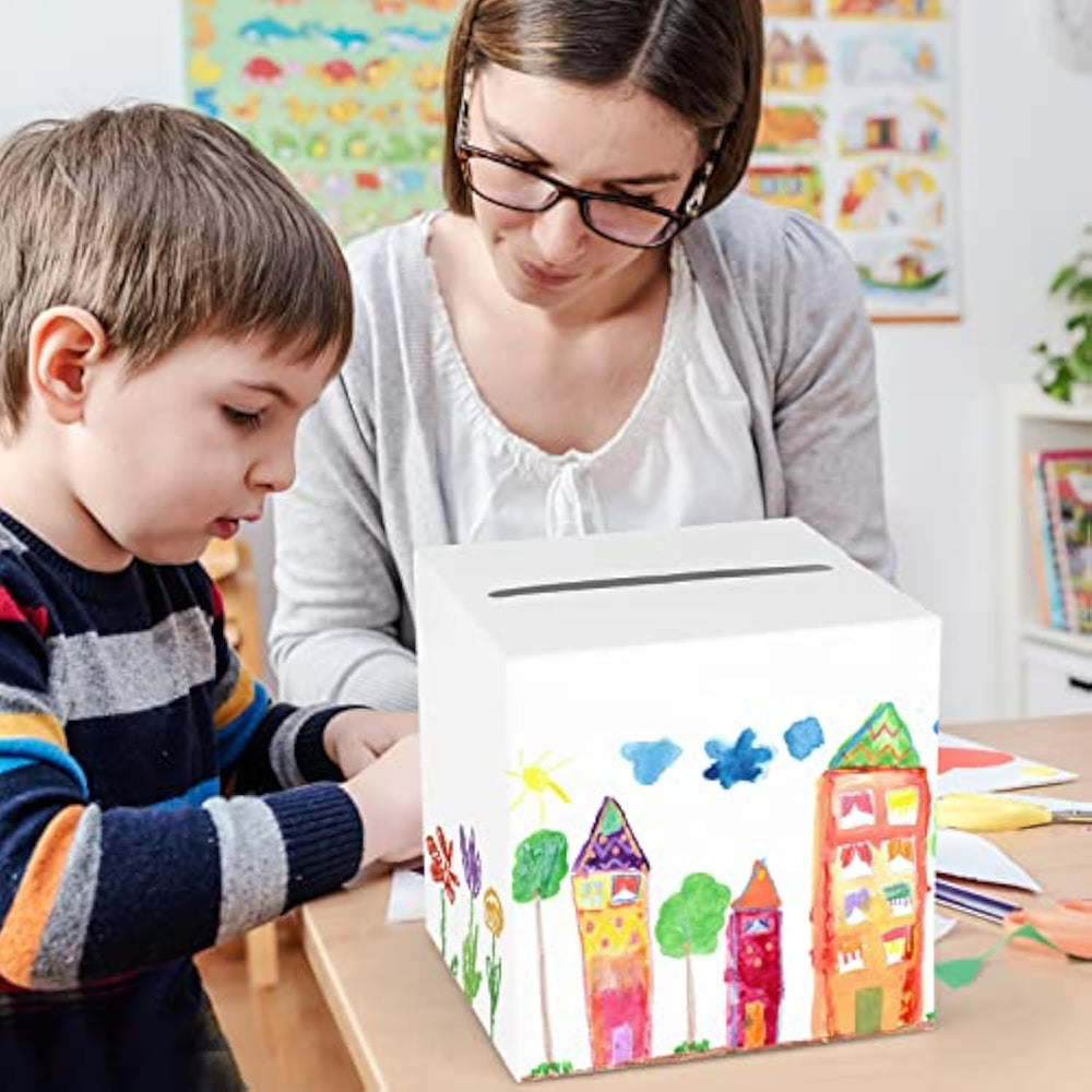 | White Card Box Size: The Card Box Measure Is 7.9 X 7.9 X 7.9 Inch, Large Size Will Hold All Sizes Of Gift Cards And Envelopes And It Can Also Be Used As A Keepsake Box. | | High Quality Material: Our Wedding Card Box Is Made Of High Quality Cardstock Paper, Sturdy And Durable, Unique Foldable Design Easy To Assemble And Collection. Exquisite Card Box, It Can Be Brought To Your Girl/Boy For A Gift. | | Easy To Diy: The White Favor Box Come In A Pure White, Simple And Elegant Appearance. You Can Write And Draw On It Through Your Own Ideas, Or Stick It With Stickers, Photos And Small Accessories To Decorate It, And Diy Becomes Your Unique Box. | | Wide Application: The Card Box Perfect For Wedding Receptions, Bridal Or Baby Showers, Birthdays, Anniversaries, Commencement, Donation Ceremony, Collecting Various Greeting Cards, Gift Cards, Letters And Notes Of Wishes. | | Perfect Decoration: The White Card Boxes For The Reception, The Beautiful Finish Make This Box Look Impressive At Any Event. Perfect For Collecting Gift Cards From Family And Friends. | |