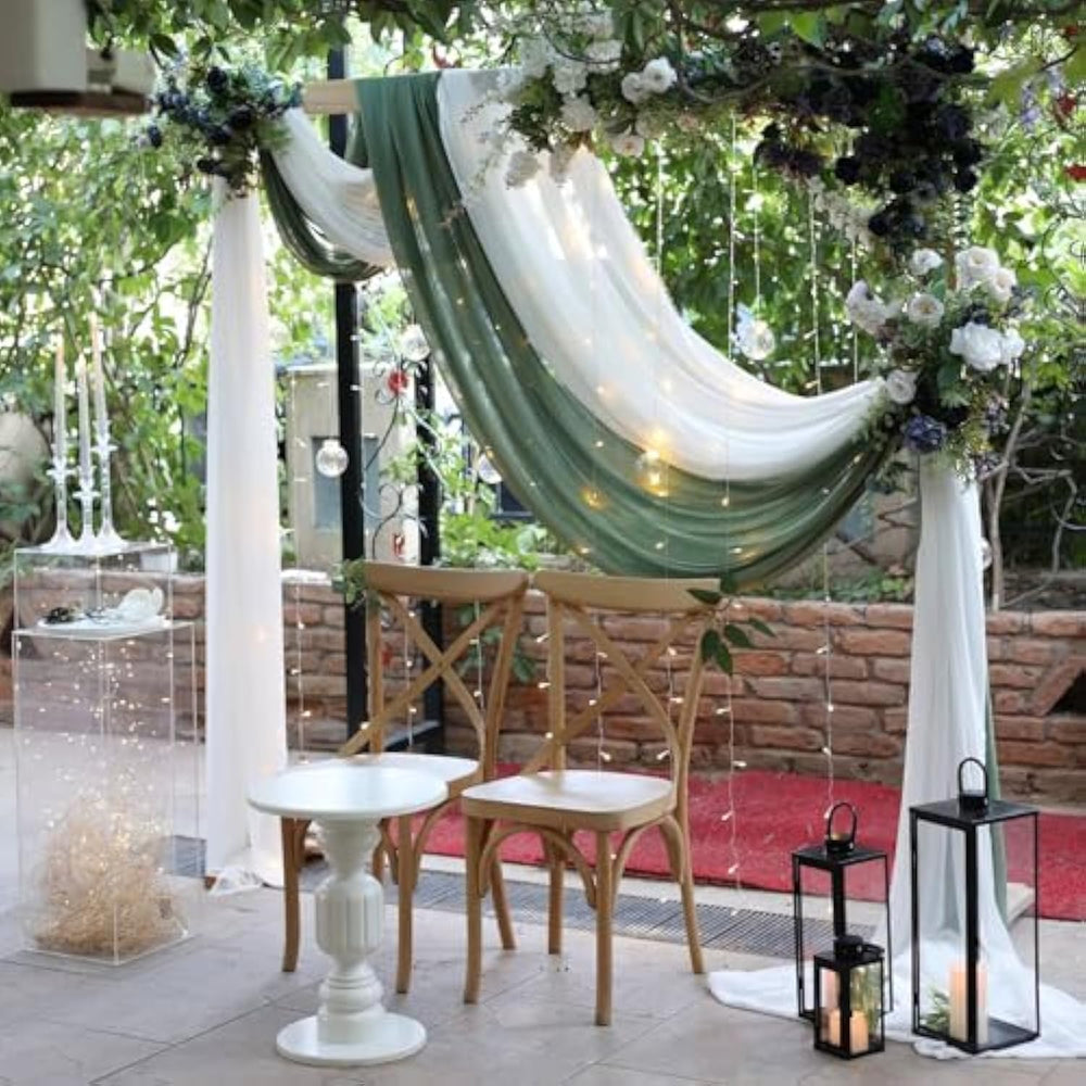 Made from high-quality soft chiffon fabric, these white wedding arch drapes will add a stunning visual element to your wedding décor, creating a beautiful and eye-catching backdrop.