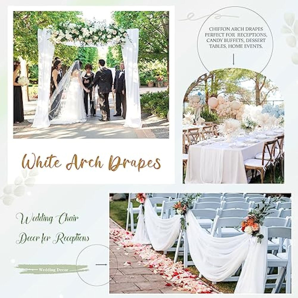 This set includes 3 panels of white wedding arch drapes, with each panel measuring 27.5" wide and 6 yards long, perfect for adding an elegant touch to your wedding decorations.