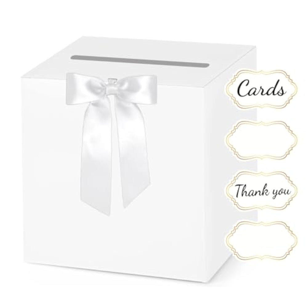 | Package Includes: 1 White Card Box, 1 Ribbon Bow, 2 Double-Sided Tapes, 4 Uniquely Shaped Cardboard Cards, 2 Can Be Diy | | Card Box Size: White Card Box Measures 8.66 X 8.66 X 8.66 Inches, Large Size To Accommodate All Size Envelope Cards For Weddings, Parties, Birthdays, Etc | | Personalized Diy Design: The White Paper Gift Box Is Made Of High-Quality Cardboard, You Can Customize It According To Your Own Unique Style, You Can Graffiti Your Favorite Pattern On The Surface Of The Card Box To Make It A Personalized And Eye-Catching Work | | Wide Range Of Uses: The White Paper Gift Money Box Is Perfect For Weddings, Baby Showers, Graduations, Bridal Showers, Birthday Parties, Engagements, And A Variety Of Other Occasions. It Has Ample Space To Hold Guests' Cards And Blessings, Allowing You To Treasure Every Sincere Blessing | | Easy To Assemble: The Box Is Designed For Convenience And Can Be Easily Assembled Without Any Hassle Or Extra Tools.Follow The Instructions On The Listing Pictures And You Can Easily Assemble The Box In Seconds | |