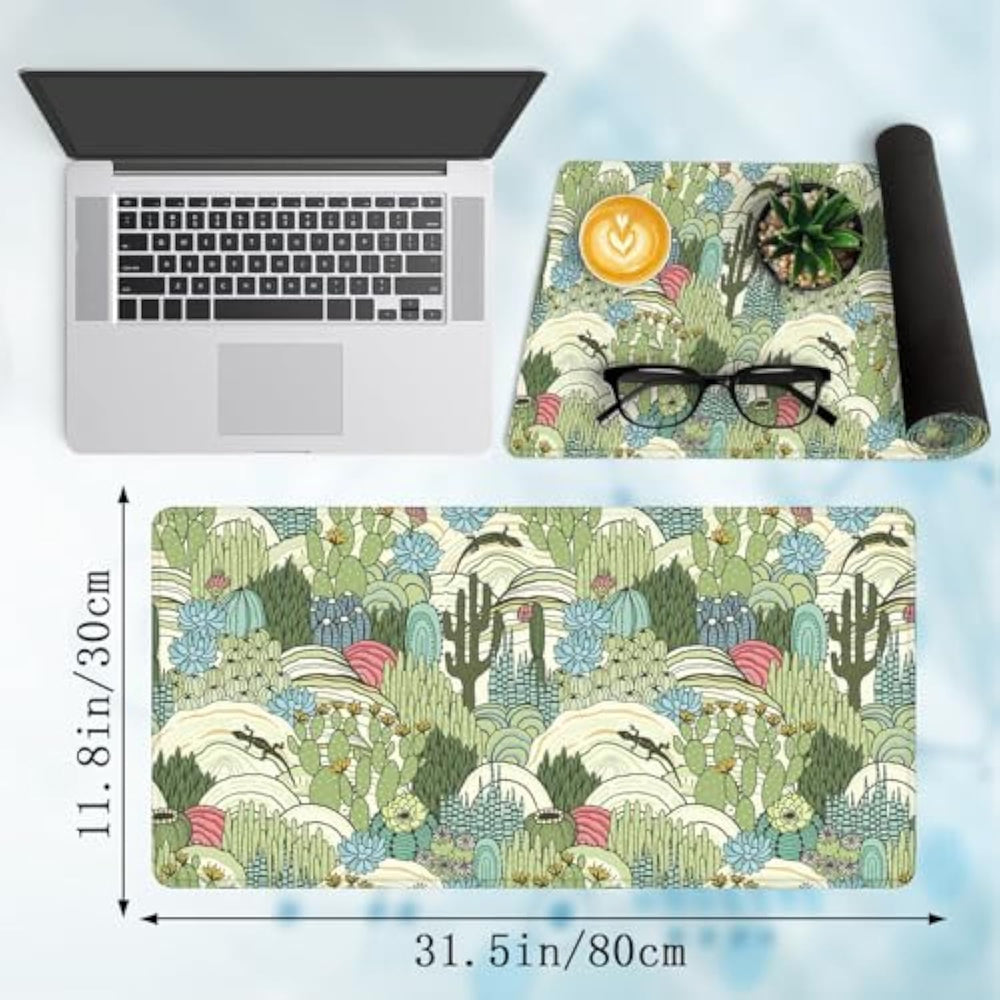 | ?Large And Extended Size?The Cactus Desk Mouse Pad Measures 31.5 X 11.8Inch,With 3Mm Thickness,Natural Non-Slip Rubber Bottom,Big Enough To Accommodate Your Computer,Laptop,Keyboard And Other Desk Items,And Still Leave Plenty Of Space For Your Mouse To Move All Around. | | ?Ultra-Smooth Surface?This Extended Mouse Pad Is Easy To Be Cleaned By Wet Rag Or Washed,No Deformation And Much Durable Than Other Ones.Covered By The Superfine Fabric,The Mouse Pad Has A Soft And Smooth Surface,Helps You Track The Mouse Fast And Accurately,Maximally Enhances Your Gaming/Working Experience.Provides You Frustration-Free Mouse Movement. | | ?Stable Non-Slip Rubber Base?The Bottom Base Of The Full Desk Mouse Pad Is Made Of Good Natural Rubber,Which Is No Harm To Human Heath.It Will Not Have Unpleasant Smell Compared With Other Wrist Rest Pads.Designed With Dense Textured Rubber,The Mouse Pad Will Grip You Desk Firmly,Avoid The Random Movement And Provide Stable Operation For Your Mouse/Keyboard. | | ?High Qulity Workmanship And Materials?The Cactus Desk Mouse Pad Has Delicate Stitched Edges,It Is Individually Hand Crafted With High Quality Warkmanship So Not Fray,Deformation And Degumming In Prolonged Use,Relax To Use. | | ?Great Gift Choice?Easy To Clean Without Delaying Your Work Or Game.Can Be Used As Desk Blotter Protector And Desk Decor Mat.Great Gift Idea For Friends,Familiy,Classmate And Workmates. | |