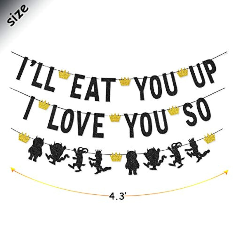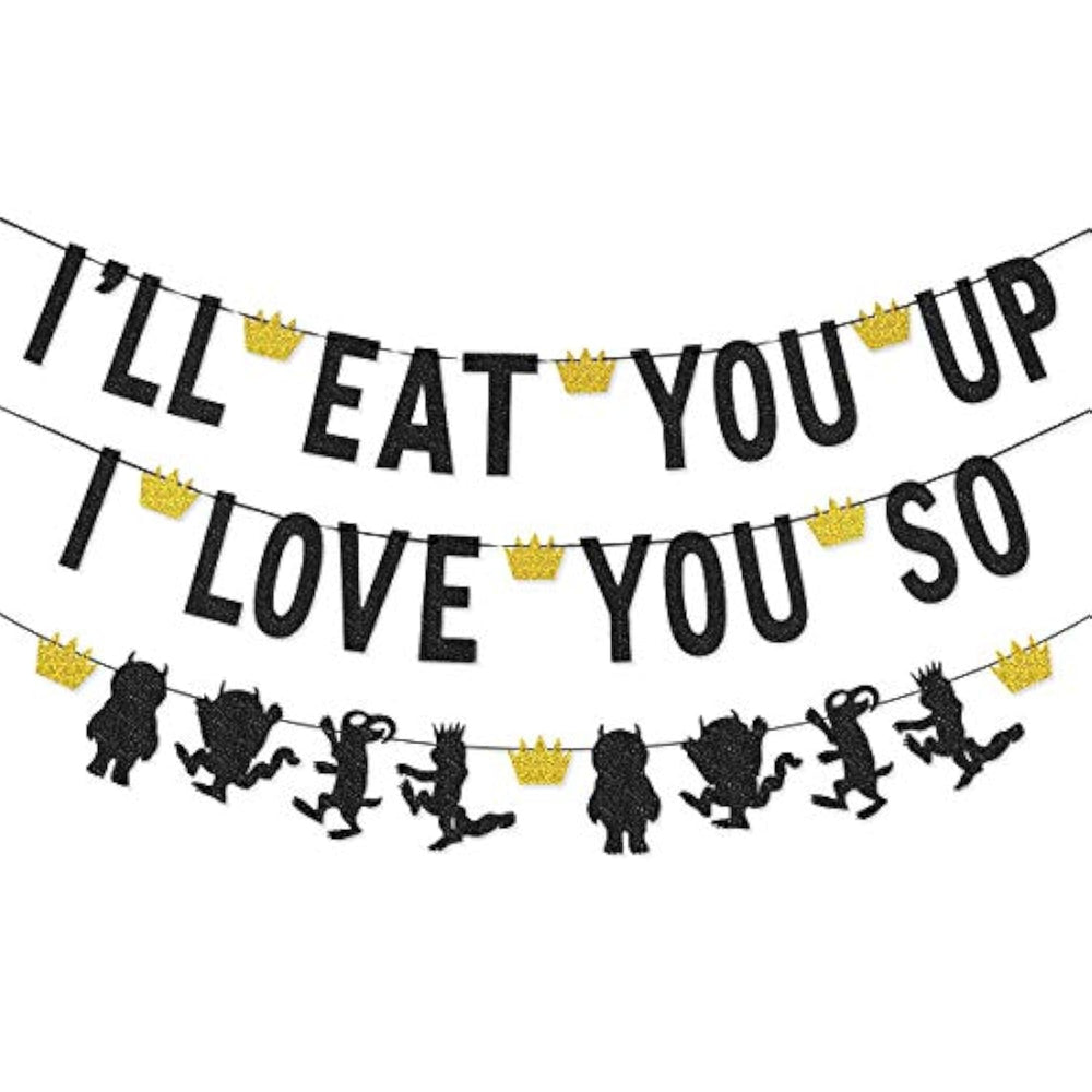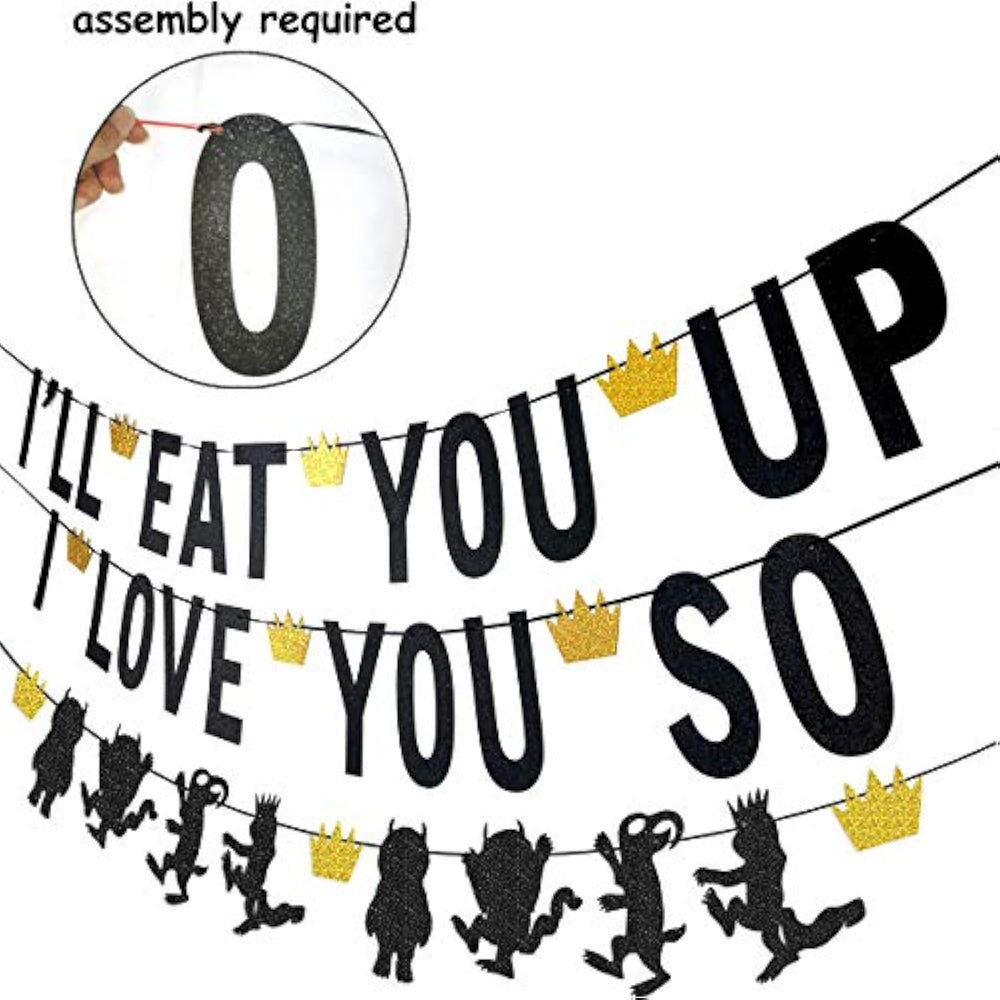 Add a magical touch to your little one’s celebration with the “I’ll Eat You Up I Love You So” banner—perfect for Wild One or Where the Wild Things Are themed parties. Made from high-quality glitter cardstock that won’t shed, this eye-catching garland makes a charming photo prop or party decoration. Some assembly is required, but don’t worry—string and a plastic needle are included for easy setup.
