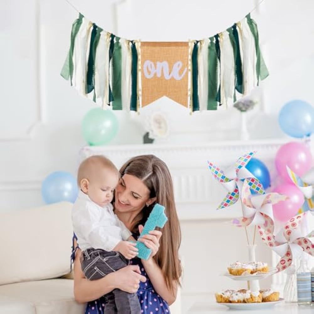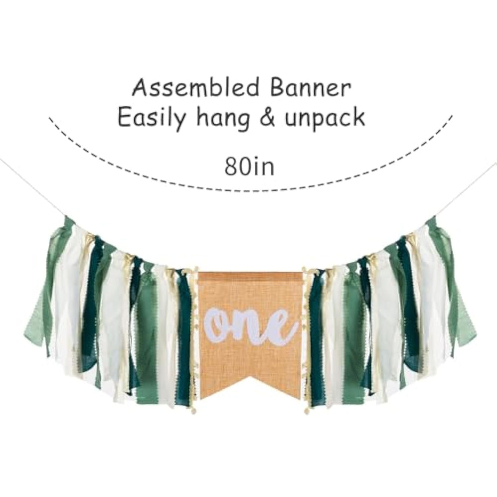 | Premium Eco-Friendly Material: Crafted From Natural Burlap And Dark Sage Green Gold Silk Ribbons, This Banner Is Non-Toxic, Durable, And Perfect For Baby-Safe Celebrations. Includes 1 "One" Flag (6.3 X 8.27 Inches) And 80 Inches Of Adjustable Twine. | | Versatile Memorable Decoration: Ideal For Highchair Decor, Cake Smash Photo Backdrops, Nursery Room Accents, Or Woodland-Themed Party Setups. Creates A Timeless Keepsake For Your Baby’S First Milestone. | | Easy Customization Hanging: Adjust Flag Spacing And Twine Length Effortlessly. Pre-Attached Ribbons Simplify Installation On Highchairs, Walls, Or Tables—No Tools Required! | | Elegant Jungle Aesthetic: Combines Rustic Burlap With Rich Dark Green Accents For A Sophisticated Yet Playful Vibe. Neutral Design Suits Boys, Girls, And Gender-Neutral Themes. | | Perfect Photo-Ready Prop: Enhances Birthday Photoshoots With Its Eye-Catching Design, Ensuring Your Baby’S Special Day Is Captured Beautifully. | |
