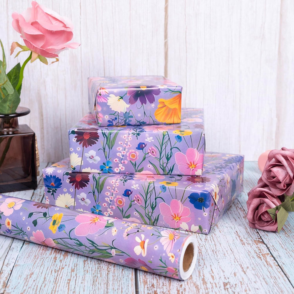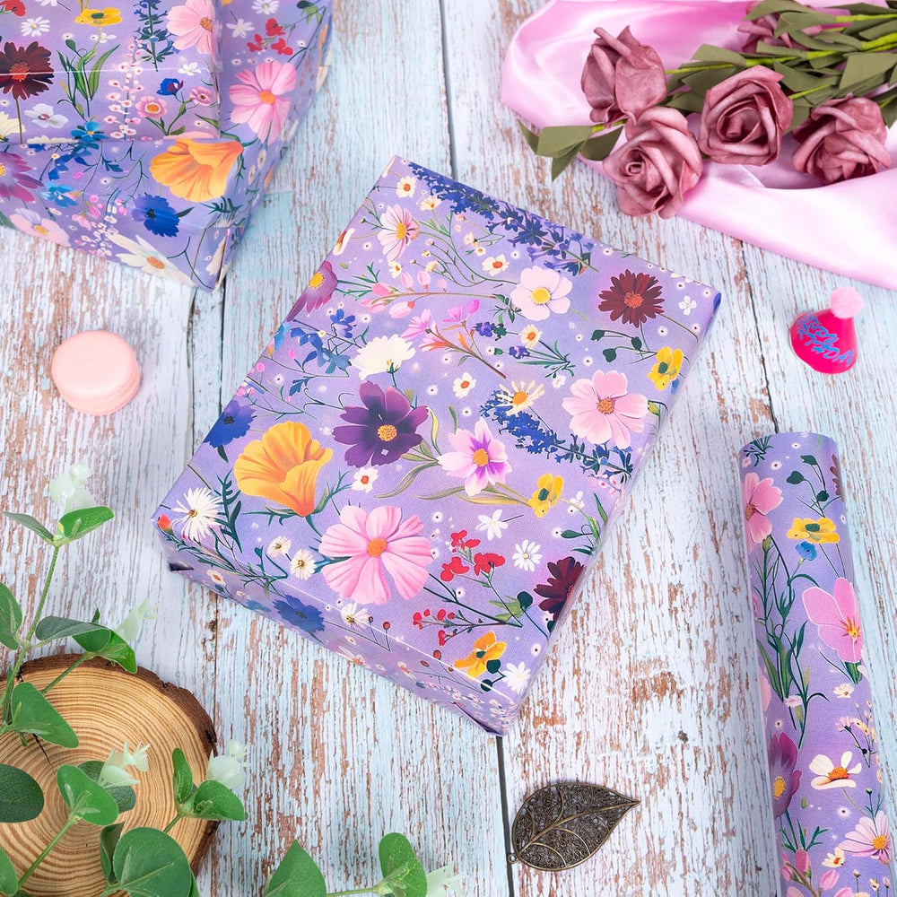 | Wildflower Designa:Our Wrapping Paper Features Colorful Wildflowers Design On Blue.These Gift Wrap Are Limited Edition And Unique To Make It Easy To Add A Personal Touch To Your Present. Size Of Gift Wrapping Paper: Each Roll Includes 6 Sheets, Each Sheet Measures 17 "X 40" /43 Cm X 100 Cm,Total 17?×20Ft, Making It Large Enough To Wrap Gifts Of All Sizes. Roll Packing:6 Sheets Stacked On A Roll, Unlike Traditional Sheets, Not Folded,. You Will Receive A Complete Wrapper, Not One With Creases. High Quality: Made With 80Gsm Paper,Our Holiday Gift Wrapping Paper Is Created With High-Quality Art Materials That Are Thick Enough To Prevent Rips But Not Too Thick To Work With. Versatile Use: Ideal For Wrapping Gifts For Holiday, Birthday, Wedding, Mothersday, Bridal Shower Spring And More. Loved Its Vibrant Designs, Perfect For Sparking Creativity In Arts And Crafts Projects.