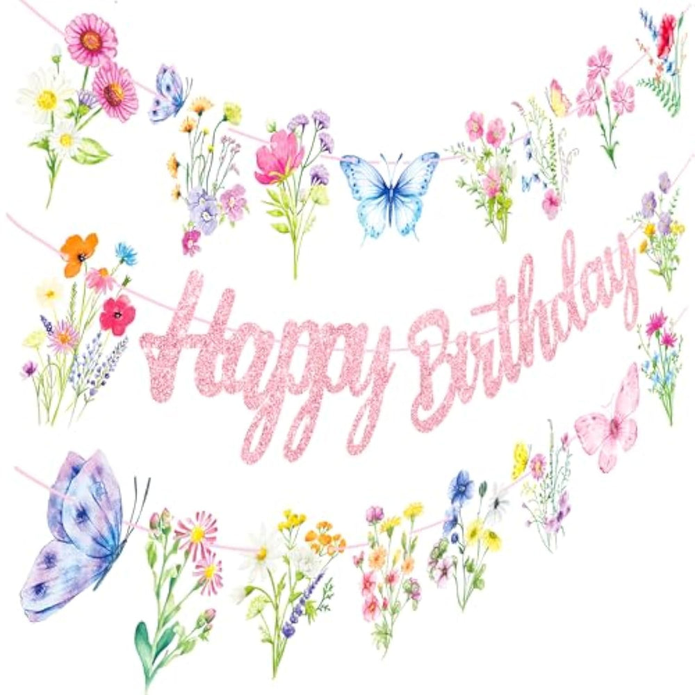 | 3Pcs Wildflower Birthday Banners?The Package Contains 2Pcs Colorful Wildflower Theme Banners And 1Pcs Pink Glitter Happy Birthday Sign Banner, A Total Of 3 Banners. With 18 Different Wildflower And Butterfly Patterns, Feel The Relaxing And Cheerful Atmosphere Of Nature | | Premium Wildflower Birthday Decorations?Pretty Wildflower Birthday Party Supplies Are Made Of Sturdy Cardboard And Reliable Strings. The Light Weight Will Not Fall Off Easily When Suspended, And The Color Can Remain Bright Even If Repeated Use | | Glitter Pink Happy Birthday Design?Bright Flower-Themed Banners With Golden Pink Happy Birthday Banners Are Especially Suitable For Girls Or Women. Romantic And Elegant Combination To Give Family And Friends The Best Birthday Wishes | | Applications Wildflower Birthday Decorations: Wildflower Party Decorations Specially Designed For Girls, Suitable For A Variety Of Occasions, Such As Wildflower Theme Parties, Girls' Birthday Parties, Baby Showers, Anniversaries, Spring Garden Parties, Flower Lovers Parties, Etc | | Assembly-Free Spring Wildflower Party Supplies?Open The Package To Use Directly, Easily Hang Anywhere You Want To Decorate, Such As Windows, Porches, Walls, Chalkboards, Tables, Stairs, Trees, Etc., Can Instantly Bring You A Stunning Visual Experience | |