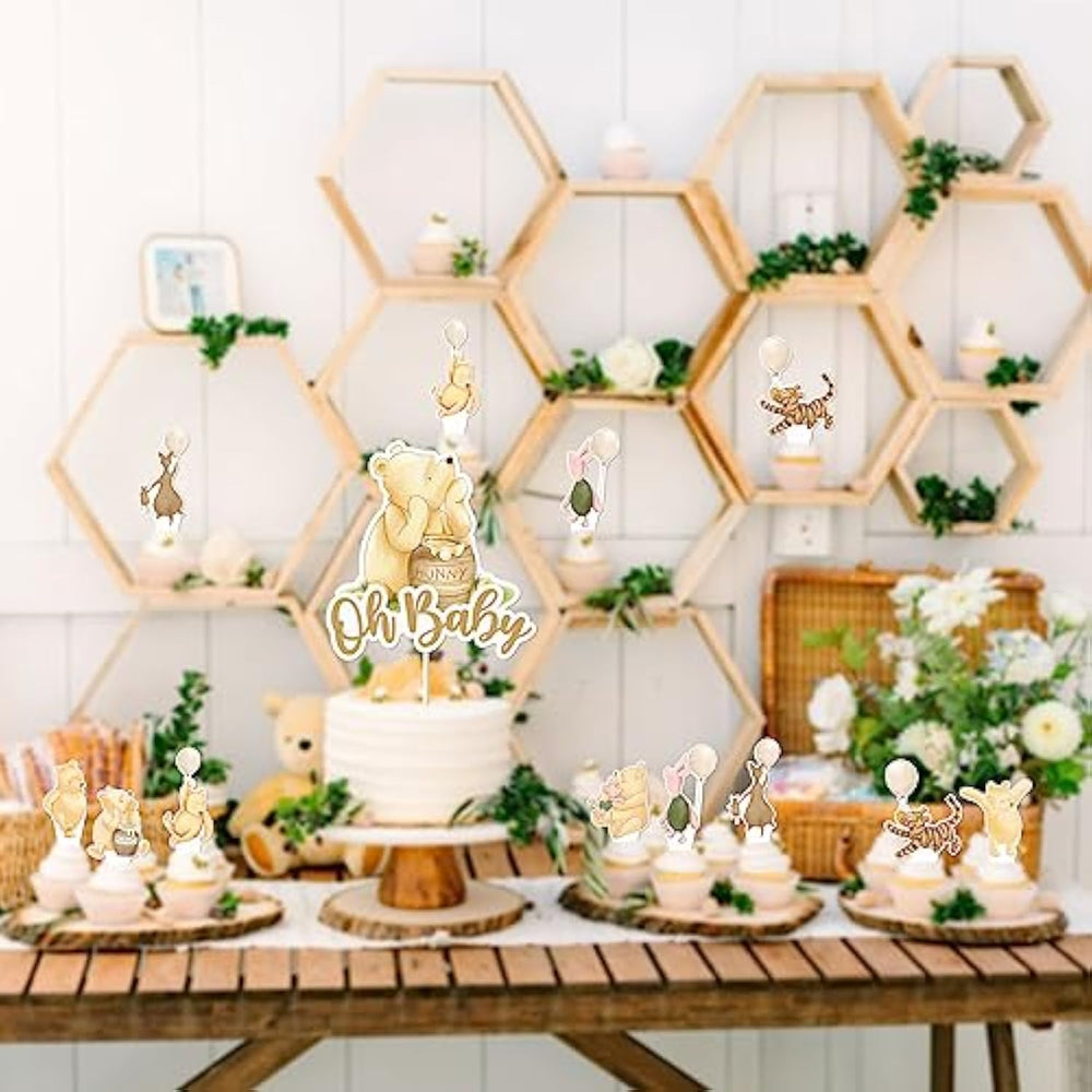 | Product Includes: You Will Get 1 Oh Baby Cake Topper And 24Pcs Cupcake Toppers.These Winnie Birthday Decorations Are So Chic And Funny That Make Your Girls Baby Shower Party Popular. | | Wide Usages :Perfect For Winnie Baby Shower Decorations, Winnie Birthday Decorations, First Birthday Party Supplies, Oh Baby, Welcome Baby, Classic Winnie Decorations For Banner, Cake, Desserts Decor. | | Reliable Material:This Classic Cake Toppers Are Adopting Quality Paper , Adorable Pattern, Sturdy, Non-Toxic And No Odd Smell, Which Are A Good Choice For Your Birthday Party. | | Convenient To Use:Just Insert Them Into Your Cake Or Cupcake And Adjust The Right Height To Display A Better Effect.They Are The Perfect Choice To Decorate The Cupcake Table And Impressive Enough To Be Noticed. | | Buy With Confidence: If You Have Any Questions Or Problem Please Be Feel Free To
