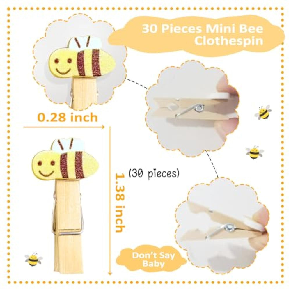 | What Will Get: The Package Contains 1 Set Of Don'T Say Baby Game Supplies, Including 1 Piece Of Wooden Don'T Say Baby Sign, 30 Pieces Of Wooden Bee Clothespins, Enough And Complete To Meet Your Party Needs | | Baby Shower Tabletop Decor: Measures Approximately 13 X 20 Cm/5 X 7Inches, Small Card Size Is 3.5 X 2.1 Inches, Easy To Install And Can Easily Stand On The Table. | | Trusty And Safe: The Don'T Say Baby Sign Is Made Of Sturdy And Smooth Wood That Is Thick And Textured To Avoid Scratching Hands;The Bee Pins Is Stable And Cute | | Functional And Beautiful Design: The Baby Shower Game Sign Is Elegant And Attractive, And Can Bring More Color To Your Party; Besides, Its Surface Is Printed With Explainable Words, Which Allow You To Understand How To Play This Pacifier Hunt Game At Once | | Light Up The Party: Baby Gift Baby Shower Games Are Perfect For Your Baby'S 1St Birthday Party Or Baby Shower Display; You Can Make The Whole Party Crazy With Games For Your Guests | |