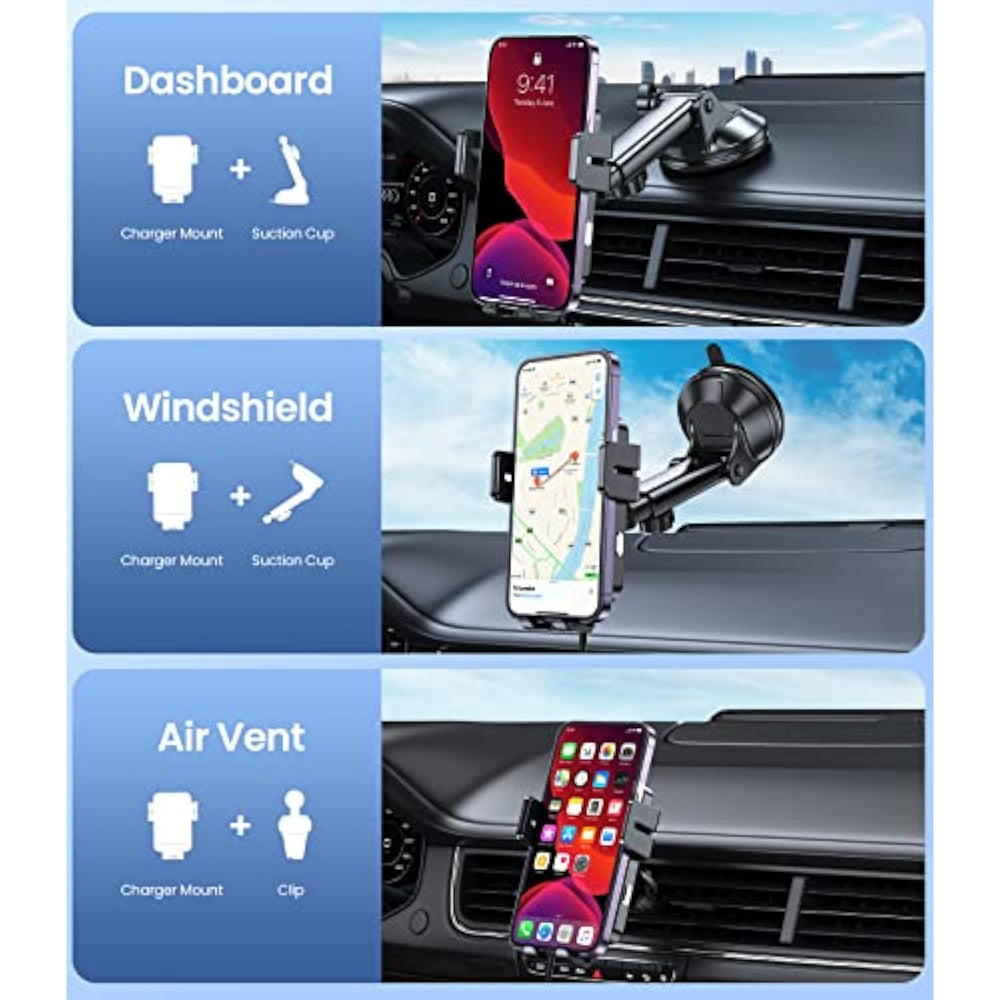 | ?Intelligent Fast Wireless Car Charger?Wireless Car Charger Mount Intelligently Identify And Charges Your Device In Safe. Just Place Your Phone Against The Wireless Car Charger Mount, It Will Auto-Lock Aligned With The Charging Coil To Max 15W Fast And More Stable Charging. | | ?3-In-1, Suitable For All Cars? The Panel Of The Phone Holder Charger Is Made Of Carbon Fiber, It Allows You To Install It On The Dashboard, Windshield Or Vent. This Wireless Car Phone Holder Charger Provides You With A Simple Way To Securely Fix Your Phone In Place, Simple And Stylish And Is Ideal For Cars, Trucks, Suvs, Etc. | | ?Arms And Foot Auto Clamping Together?The Car Phone Holder Mount Wireless Charging'S Arms And Foot Will Auto-Opening After Connecting To Power, And Will Auto Clamping Firmly Once Place Your Phone Inside, Don'T Need To Manually Adjust The Foot To Clamp The Phone. | | ?360° View Angle Available?360° Ball Joint And Extendable Telescopic Arm Allow You To Adjust The Phone To Any Angle. This Car Charger Mount Allows You To Use Your Phone In Portrait And Landscape Mode. Avoid Obstructing The Line Of Sight During Driving To Ensure Driving Stability And Safety. | | ?Hold Your Phone Stably And Gently?This Car Phone Mount Charger Features A Non-Slip Rubber Pad, Solid Support Frame And Strong And Scratch-Free Claws To Form A Solid Triangle Support To Ensure Your Smartphone Sits Firmly In The Car Mount While Driving, Without Distracting You From Driving. | | ?Wide Compatibility?This Wireless Car Charger Mount Can Compatible With All Wireless Charging Phones.15W Wireless Fast Charging For Lg V50/V40/V30/G8 /G7; 10W For Samsung Galaxy S23 Ultra/S23+/S23/S22 Ultra/S22/S21/ S21+/ S21 Ultra/S20+/S20/Note 20/Note 20 Ultra/Note 10+/Note 10/S10+; 7.5W For Iphone 16 15/14/14 Plus/14 Pro/14 Pro Max/13/13 Pro/ 12 Pro Max/12 Pro/12/11 /11 Pro /11 Pro Max /Se /Xs /X/Xr/8 Plus/8; 5W Standard Wireless Charging For Other Enabled Phones. | |