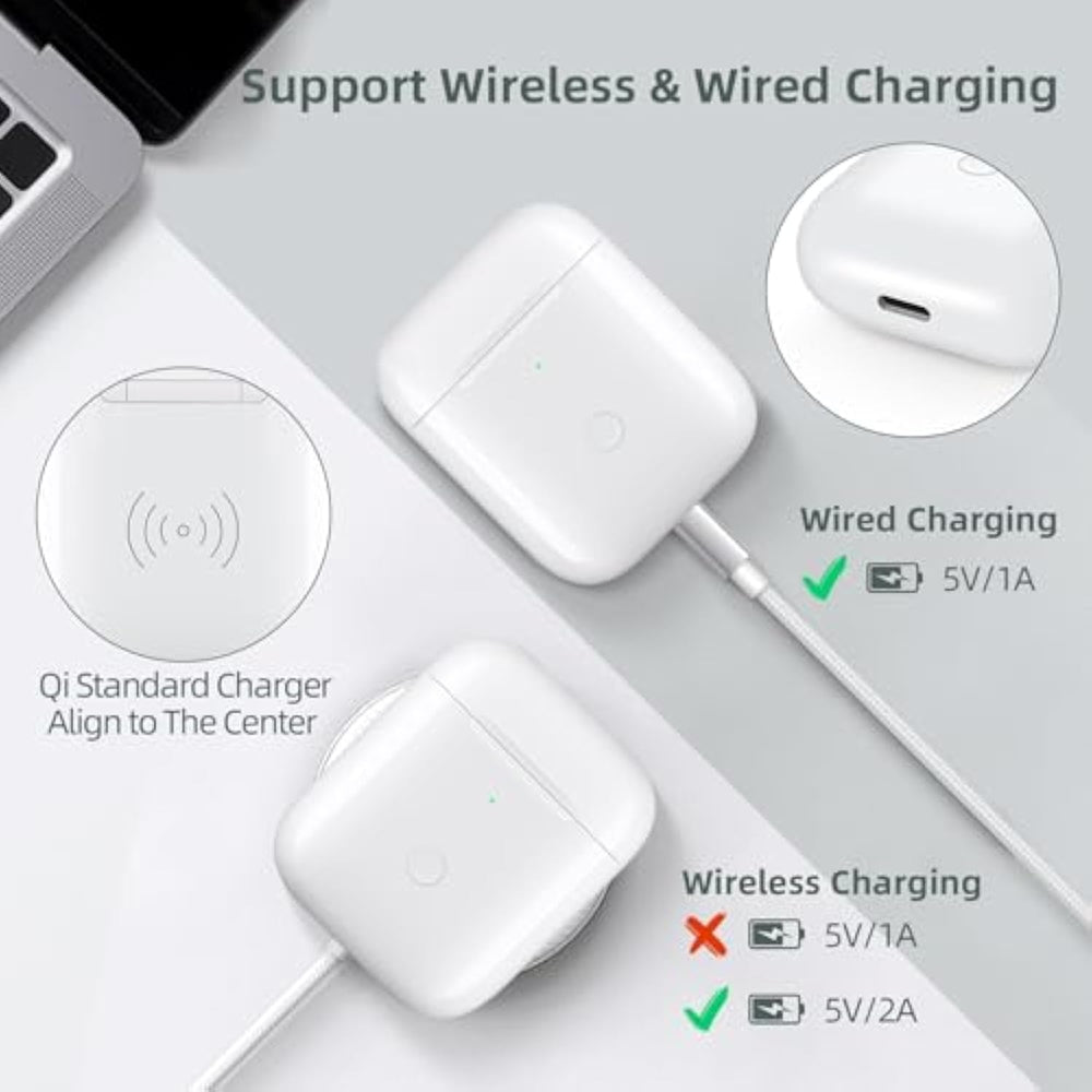 | High-Quality Replacement: This Air Pod Charging Case Is A Cost-Effective Alternative That Matches The Size And Quality Of The Original For Airpods 1St 2Nd Generation. Please Note That It Is Branded As And Is Not Suitable For The 3Rd Or Pro Series | | Fast Charging Large Capacity: With A 450Mah Capacity, This Earphone Charger Case Can Support More Than 3 Full Charges. It Takes Only 2.5 Hours To Fully Charge The Case And Just 20 Minutes To Charge The Earbuds. Fast Charging And A Large Battery Capacity Ensure Uninterrupted Music Or Podcast Enjoyment | | Sync Button Led Indicator: Save Time With The Bluetooth Pairing Button That Allows Easy Device Connection Without Repetitive Pairing. The Indicator Light Conveniently Shows The Battery Level And Ensures Timely Charging, So Your Earbuds Remain Powered Up | | Dual Charging Options: The Earbuds Charging Replacement Case Allows You To Continue Your Charging Habits With The Convenience Of Both Wireless And Wired Charging. Wireless Charging Requires A 5V/2A Adapter, While Wired Charging Delivers Faster Charging Speed And Generates Less Heat | | Easy To Carry: Our Air Pod Charging Case Is Lightweight And Portable. It Also Offers Reliable Shell Protection For Your Earbuds. If You Encounter Any Problems, Please Feel Free To