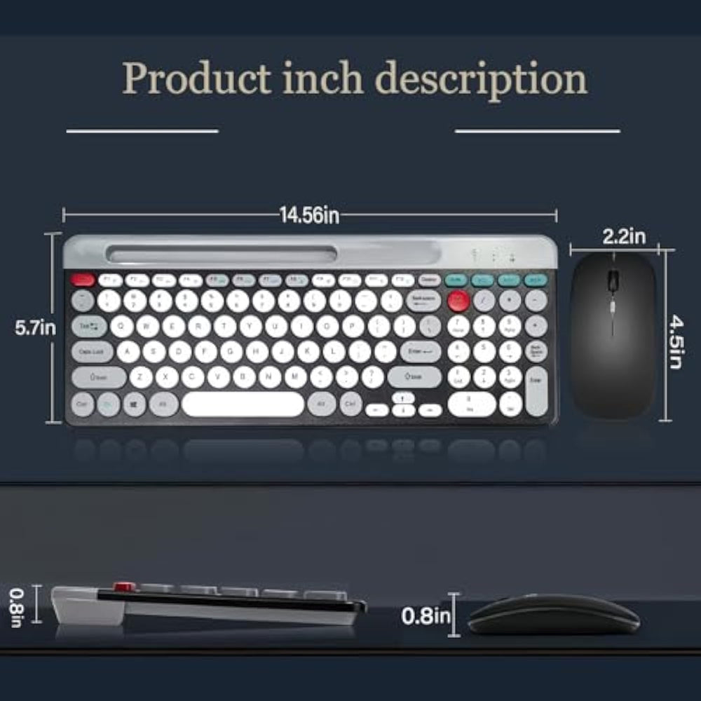 | ? 2.4G Bluetooth 5.0 And 3.0 Keyboard And Mouse:Multi-Device Wireless Keyboard And Mouse Supports 3 Devices To Connect At The Same Time, (2.4G Wireless + Bluetooth 5.0 + Bluetooth 3.0). Plug-And-Play 2.4G Receiver, No Need To Install Additional Software Or Drivers, You Can Type, Switch And Keep Typing! | | Less Noise,More Focus:Intimate Mute Button Design,So That You Do Not Disturb Others When Playing Office And Games;Low-Profile Keys Offer Quiet Typing,Silent In A Wireless Usb Mouse And Keyboard. | | Phone Tablet Keyboard With Integrated Stand : Bluetooth Phone Keyboard Includes Feet Will Prevent Your Wrist From Hurting While Long Sessions Of Typing,The Sturdy Built Body Will Keep Your Devices Stable;The System Supports Windows 7 And Above,Mac Os,Ios ,Android Or Usb Compatible Devices; | | Safety Precaution:Keep The Equipment Dry And Away From Precipitation,Moisture,And All Kinds Of Liquids And Condensate,Do Not Use This Product With Wet Hands,Do Not Use Or Store The Device In Dusty Or Dirty Places,Do Not Store The Equipment In Hot Or Cold Conditions(This May Be Damage The Equipment).Do Not Drop,Knock Or Shake The Equipment(Use May Cause Damage); ? | | Faq: If The Operation Is Fail,Perform The Following Steps:1.Check The Connector Integrity,2.Check The Connection To The Device,3.Check Your Device Settings,4.Check The Battery Level,5. Disconnect And Reconnect The Device,Restart The Device If The Problem Persists,