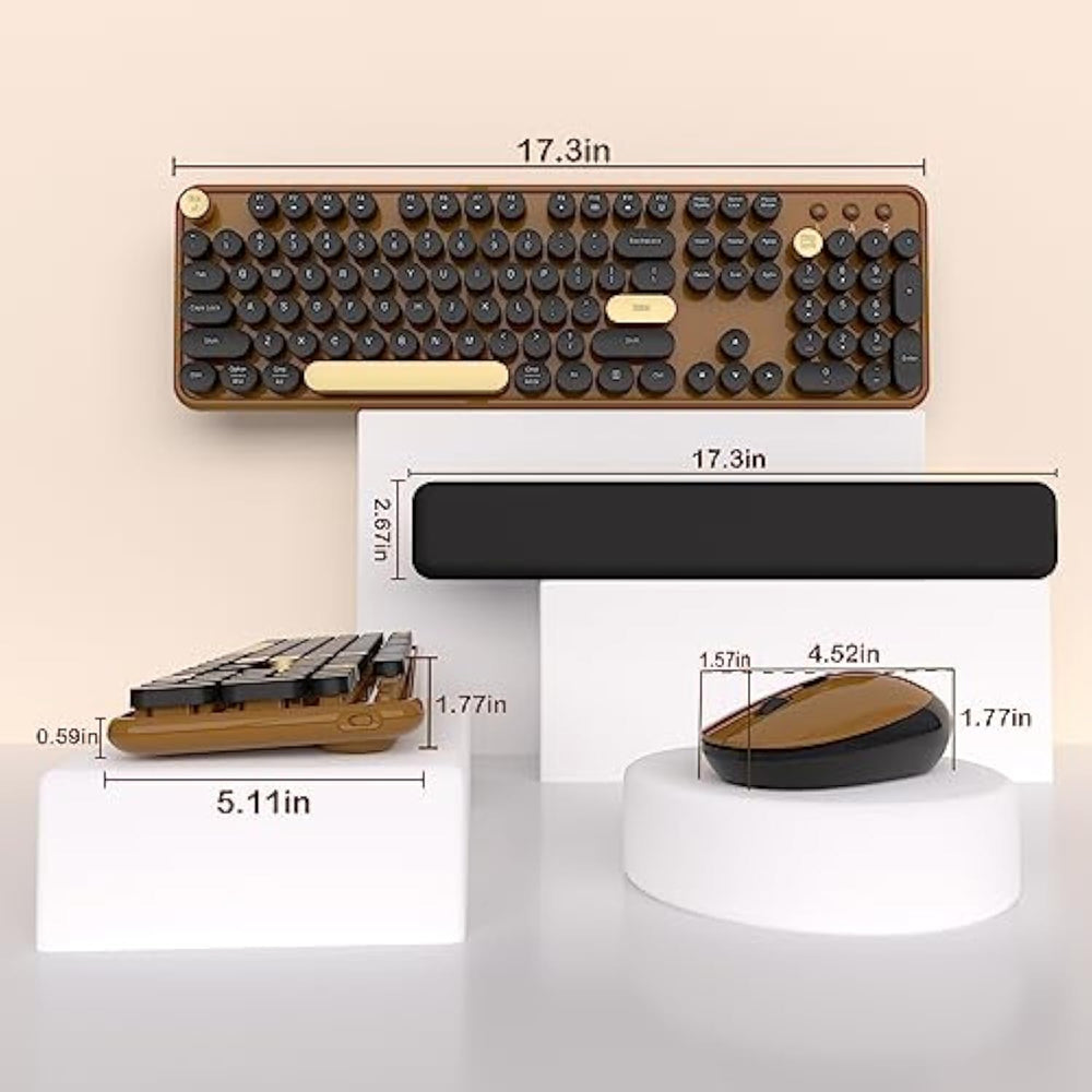 | ?Vintage Typewriter Style?This Wireless Keyboard Adds A Touch Of Elegance To Your Workspace With Its Classic Retro Design. Each Keycap Exudes Nostalgia, Transporting You Back To That Exciting Era Of Typewriters | | ?2024 Upgraded Model?The Keyboard Wrist Rest Enhances Comfort, Made From High-Quality, Soft, And Durable Materials. It Effectively Reduces Wrist Fatigue, Ensuring A Healthier Typing Experience | | ?Shared Usb Receiver?The Wireless Keyboard And Mouse Set Conveniently Share A Single Usb Nano Receiver, Stored Inside The Mouse Cover. It Also Includes A Usb-C Adapter, Ensuring Compatibility With A Broader Range Of Devices, Including Windows 7, 8, 10, 11, And Mac | | ?Smart Power-Saving Design?Independent Switches And Auto-Sleep Reduce Battery Usage. Wake Up The Keyboard Or Mouse Instantly With A Simple Click | | ?Back-To-School Must-Haven?Ideal For Students Heading Back To School, The Combo Delivers Both Functionality And Style. Elevate Your Study Sessions With The Freedom Of Wireless Connectivity And A Splash Of Color | | ?24 Months Of Team Support?If You Encounter Any Problems, Please Let Us Know. Our Professional Team Will Provide You With A Satisfactory Answer Within 24 Hours. Your Satisfaction Is Our Top Priority | | ?Essential School Supplies Desk Accessories?This Keyboard And Mouse Set Is Not Only A Practical Tool For College Students In The Classroom But Also A Stylish Addition To Any Office Desk. It Boosts Productivity While Adding Personality And Energy To Your Workspace, Making It A Great Gift For Birthdays Or Holidays | |