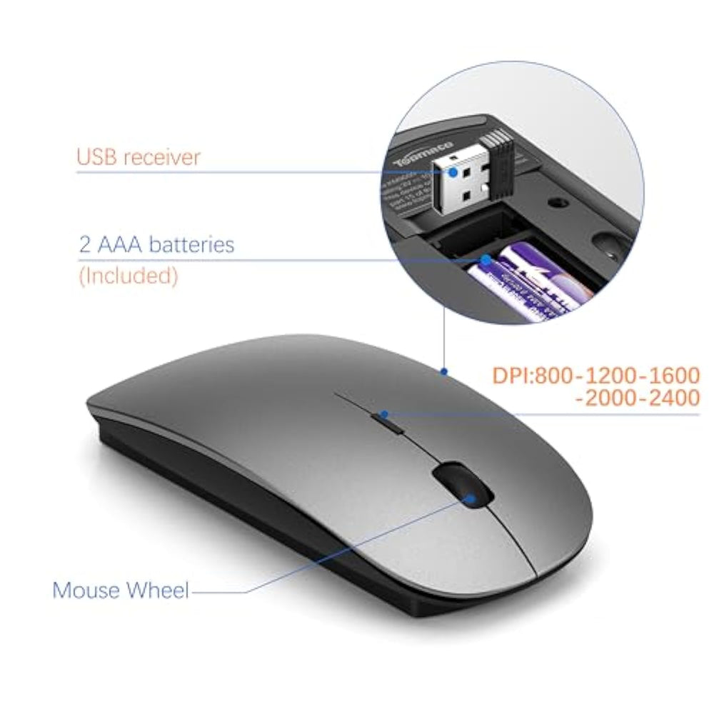 | ?Stable 2.4G Wireless Connection?Powerful And Reliable Connection Of Wireless Keyboard Mouse Is Up To 10 M(393.7In). Wireless Keyboard With Mouse Combo Share A Nano Receiver (Stored At The Bottom Of The Mouse) Without Installing Any Additional Software, Plug And Play. Keep Your Desk Clean And Tidy. | | ?Efficient Desktop Keyboard Wireless + Wide Compatibility?The Wireless Computer Keyboard Preserving The Keys Of The Numeric Keypad, The Full-Size Keyboard Has 12 Function Keys Allows You To Quickly Access The Music/Volume/Mail, Etc(The Hot-Keys Not Fully Compatible With Mac System). The Keyboard Mouse Combo Wireless Is Compatible With Windows Xp / Me/ Vista / 7 / 8 /10 / 11 Operating Systems. Work Well With Devices Which Has Usb Slot Like Pc, Laptop, Macbook, Desktop, Chrome-Book, Smart Tv. | | ?Silent Keyboard And 5 Dpi Mouse?The Wireless Office Keyboard’ S Scissor Switch Keys Provide Less Noise. Light And Responsive Tactile Keystroke Makes Typing Soft And Comfortable. Silent Cordless Mouse Has 5 Dpi Levels (800/1200/1600/2000/2400), Allowing You To Adjust The Dpi Speed To Your Preference. It Is Fast And Precise, Keep Quiet While Maintaining Sensitivity. Never Worry About Disturbing Others To Rest While Working Or Playing. | | ?Ultra-Slim And Portable Design?Wireless Pc Keyboard Has 14.55X5.5X0.8In(37*14*2Cm), 0.8In(2Cm) Ultra-Thin Abs Plastic Body, Which Can Save Space And Easy To Carry. Kit Keyboard And Mouse Wireless’S Sleek Design Is Super Match With Office Desk. Perfect For Business Travel, Office, Home, Library And Many Public Occasions. | | ?Battery Included + Keyboard Cover? Long-Lasting Basic Aa And Aaa Batteries Are Included In The Wireless Keyboard And Mice Combo, Battery Life Between 3 And 5 Months(Varies By Usage Conditions). The Included Cover Can Protect Your Wireless Office Keyboard From Dust And Liquid. 2-Year : If Quality Problem With Wireless Keyboard Mouse Set Occur Within One Year, We Will Replace The New One To You For Free. | | ?Conexión Inalámbrica Estable De 2.4G?La Conexión Potente Y Confiable Del Mouse Con Teclado Inalámbrico Es De Hasta 10 M (393.7In). El Combo De Teclado Inalámbrico Con Mouse Comparte Un Receptor Nano (Almacenado En La Parte Inferior Del Mouse) Sin Instalar Ningún Software Adicional, Plug And Play. Mantenga Su Escritorio Limpio Y Ordenado. | | ?Teclado De Escritorio Eficiente Inalámbrico + Amplia Compatibilidad?El Teclado Ordenador Inalámbrico Que Conserva Las Teclas Del Teclado Numérico Y El Teclado De Tamaño Completo. El Teclado Ergonomico Español Y Las 12 Teclas De Función Le Permiten Acceder Rápidamente A La Música / Controlar El Volumen / Correo, Etc. El Combo Inalámbrico De Teclado Y Ratón Es Compatible Con Los Sistemas Operativos Windows Xp / Me / Vista / 7/8/10 / Os. | |